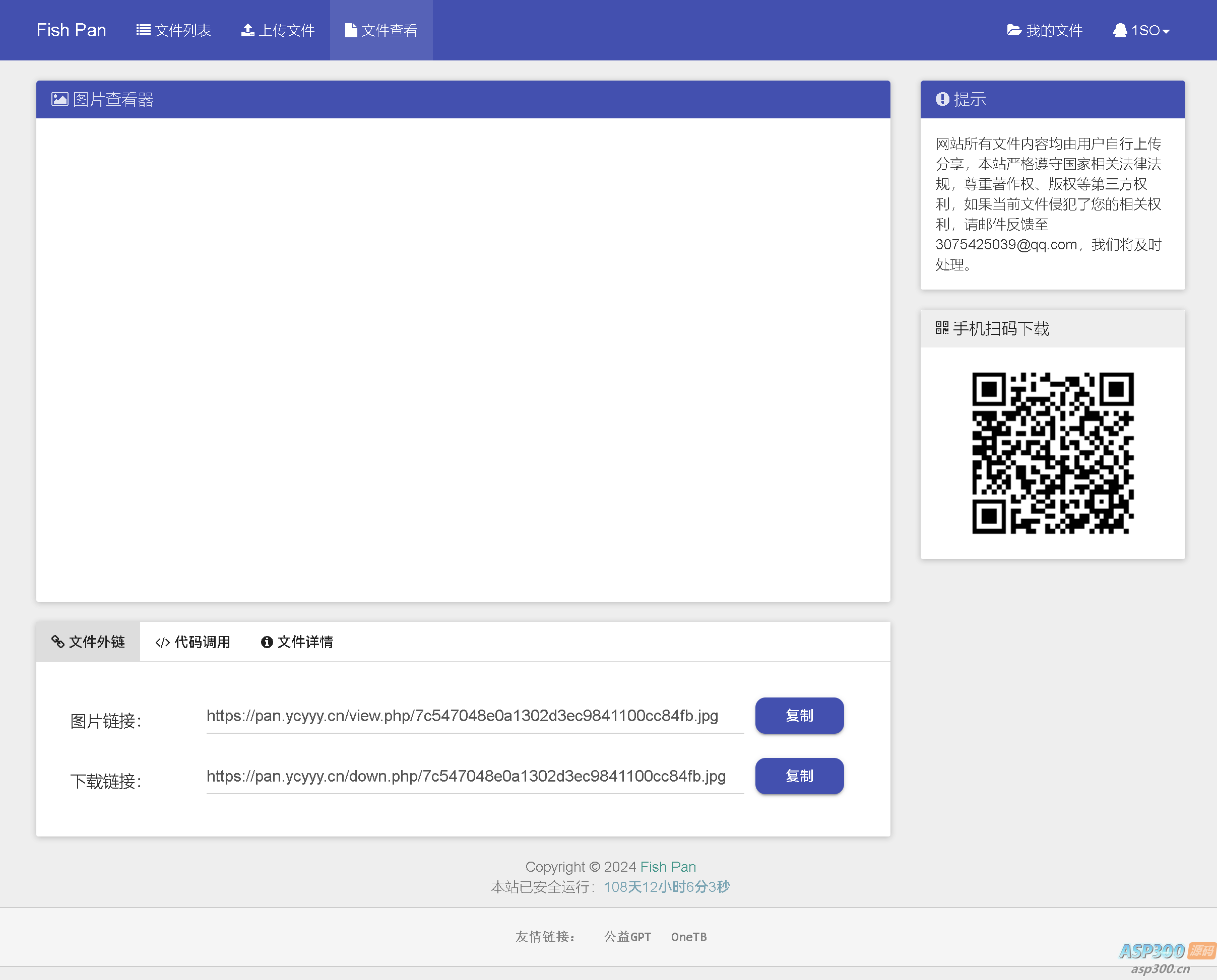 适合小文件快速共享,文件可以设置访问密码,doc,图片等文件可以预览,音频可以在线播放,也适合做图床,支持在线下载,美化前台UI,运行天数和友链在后台统计代码修改。