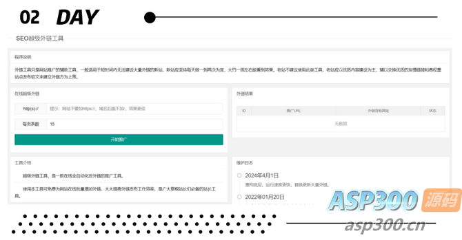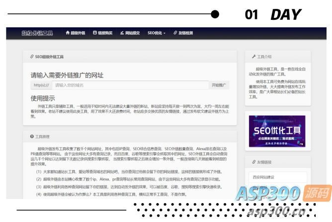 外链工具只是网站推广的辅助工具,一般适用于短时间内无法建设大量外链的新站,新站应坚持每天做一到两次为宜,大约一周左右能看到效果。老站不建议使用此类工具,老站应以优质内容建设为主,辅以交换优质的友情链接和高权重站点发布软文来建立外链方为上策