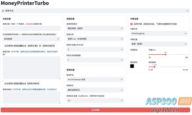 只需提供一个视频 主题 或 关键词 ,就可以全自动生成视频文案、 视频素材、视频字幕、视频背景音乐,然后合成一个高清的短视频。 声明:本站所有资源均来源于互联网收集,仅供学习参考使用,如若本站内容侵犯了原著者的合法权益,可联系我们进行处理。
