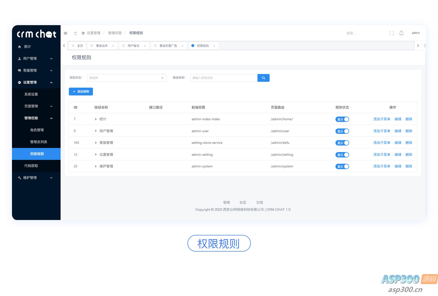 本系统(CRMChat)是采用Swoole4+Tp6+Redis+Vue+Mysql开发的独立高性能客服系统,客服系统用户端支持Pc端、移动端、小程序、文章中接入客服,利用超链接、网页内嵌、二维码、定制对接等方式让网上所有通道都可以快速通过本系统联系到商家,商家端支持Pc端、移动端(App)随时随地接收到用户的各种咨询,商家可以添加话术库、也可以对用户进行分组、加标签、加备注进行管理,是一款互联网链接商家的一个桥梁,也是商家客户管理的工具,本开源项目遵循最开放的木兰协议,可以随意使用。