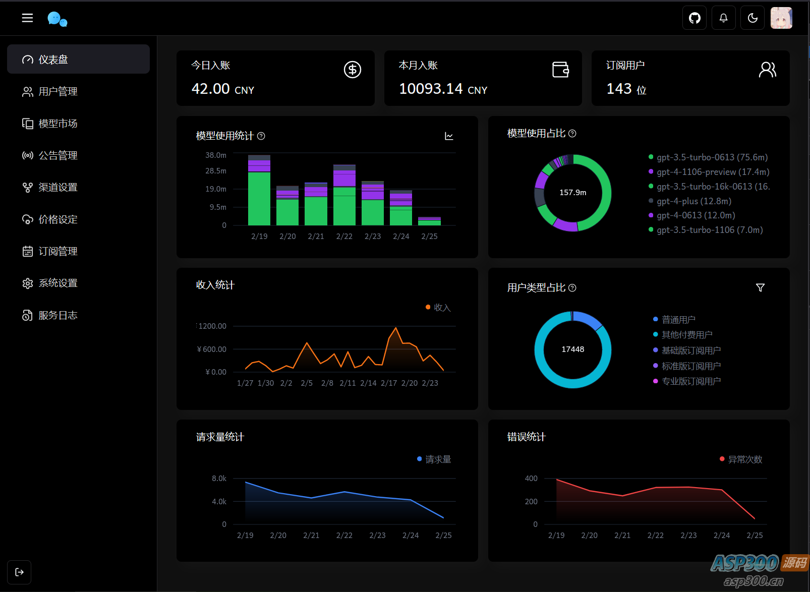 模型市场功能, 支持模型搜索, 支持顺序拖拽, 包含模型名称, 模型描述, 模型 Tags, 模型头像, 自动绑定模型的价格设置, 自动绑定订阅配额 (包含在订阅的模型将标有 plus 标签)