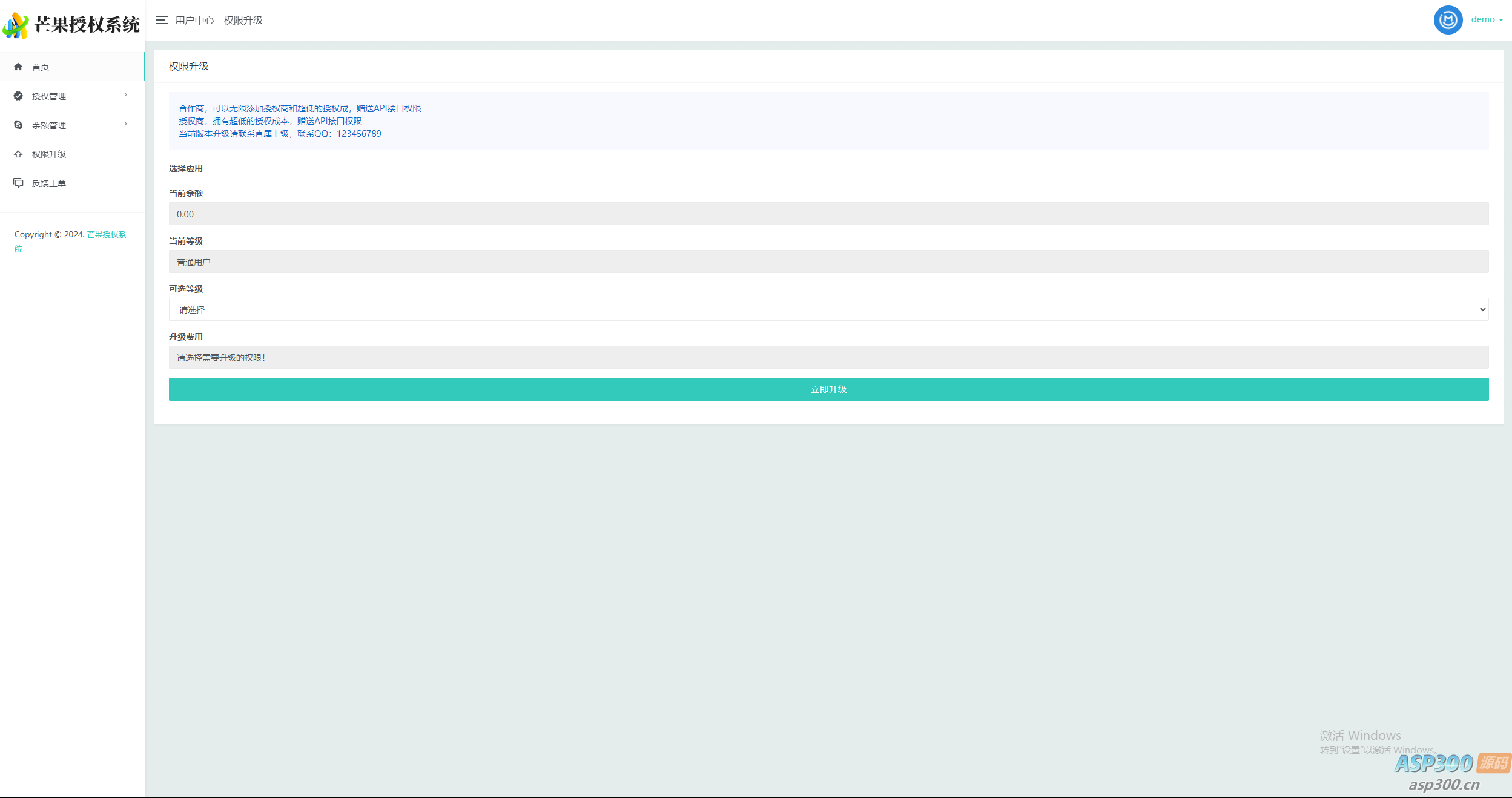 3、用户自助授权 自助升级权限 系统版本递增更新