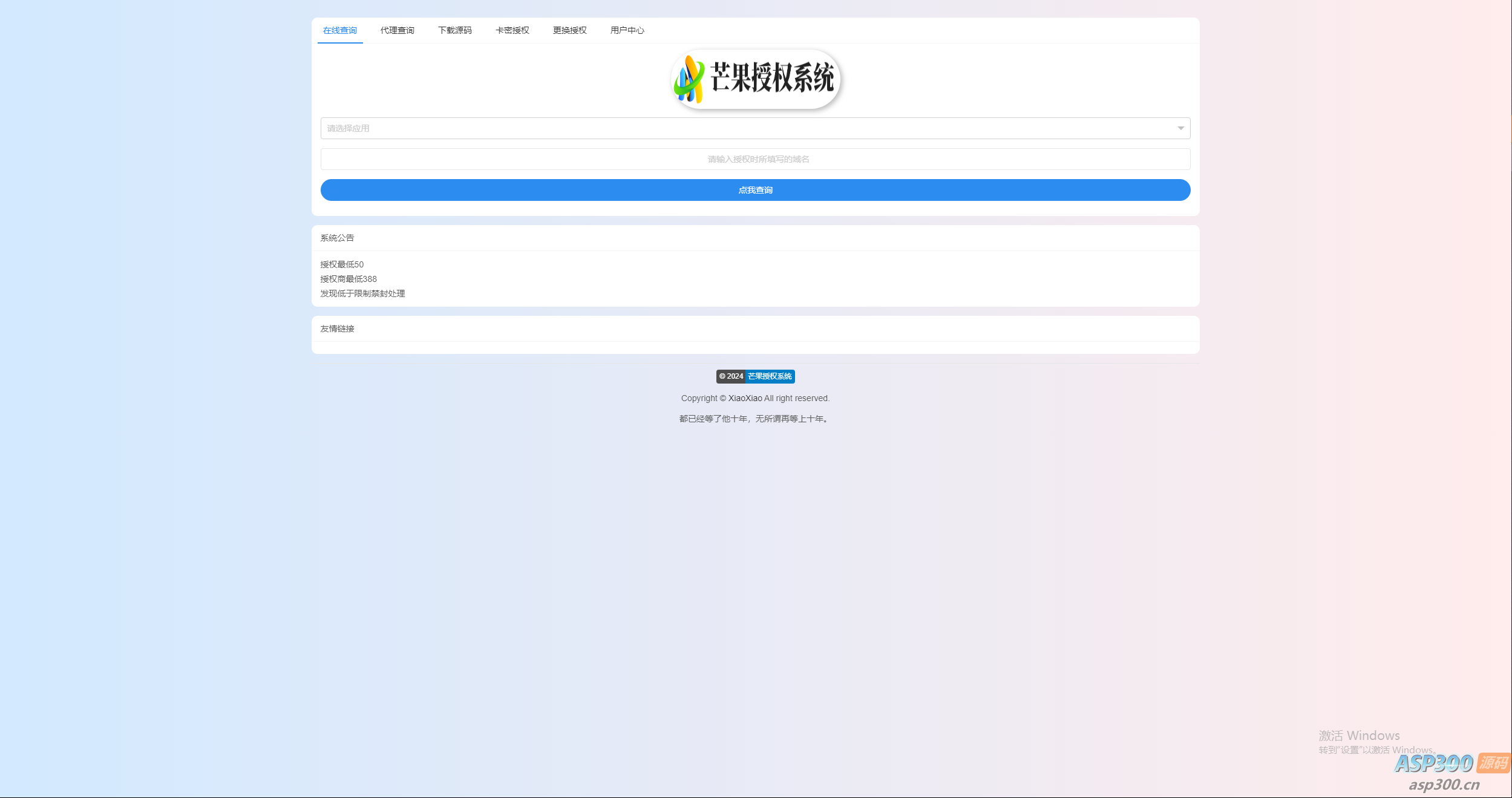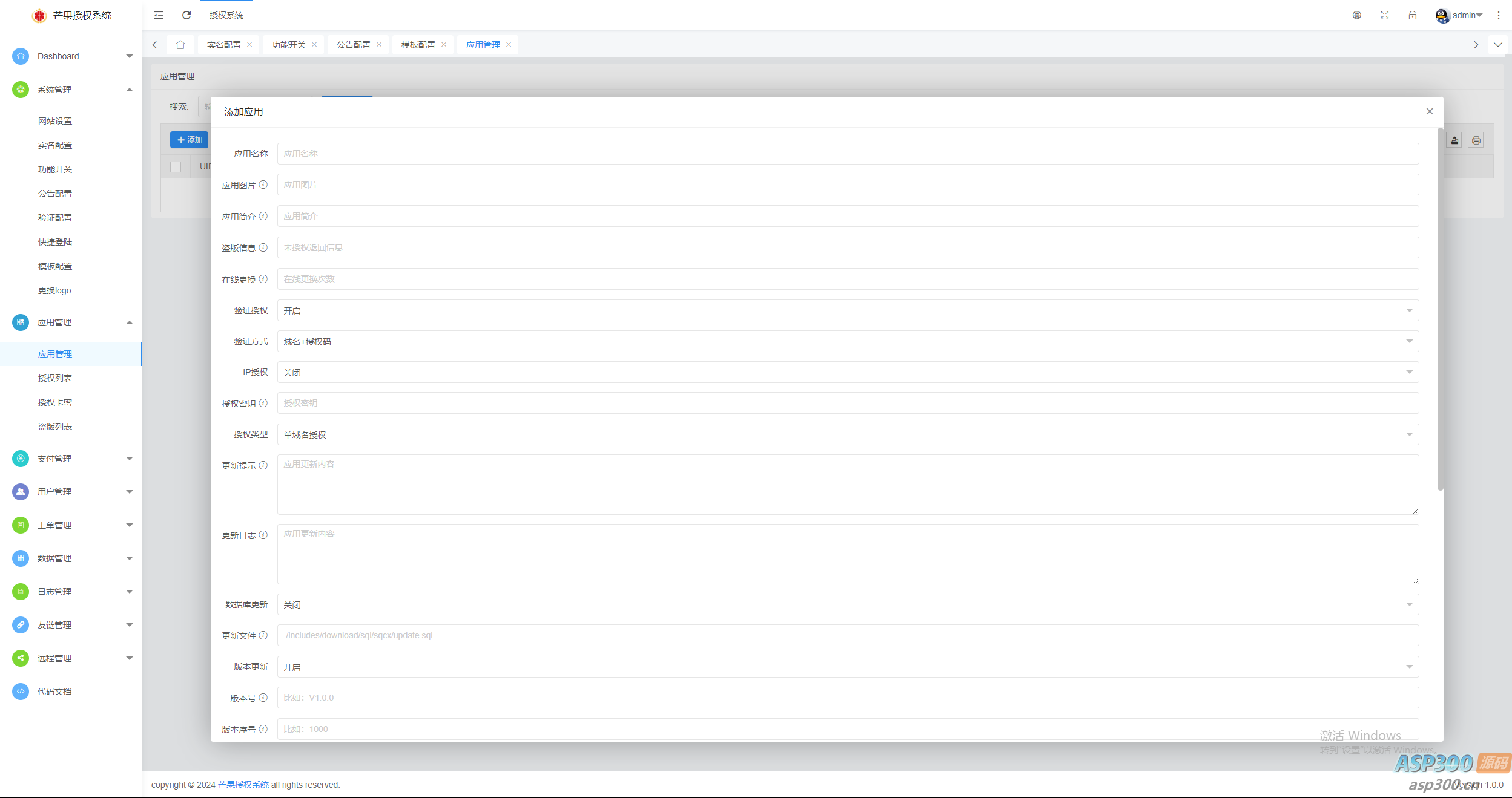 4、模板自由选择 卡密在线授权 自助更换授权