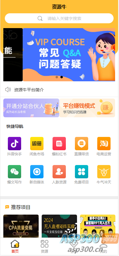 ● 资源牛全功能V3版本支持 PC端、手机H5公众号、微信小程序