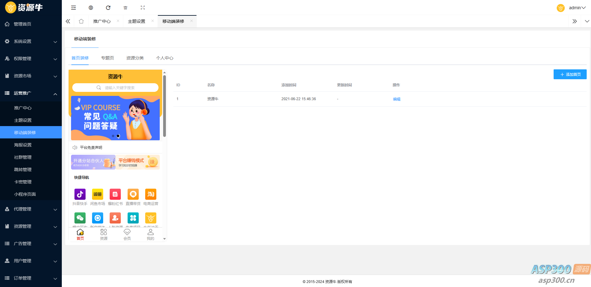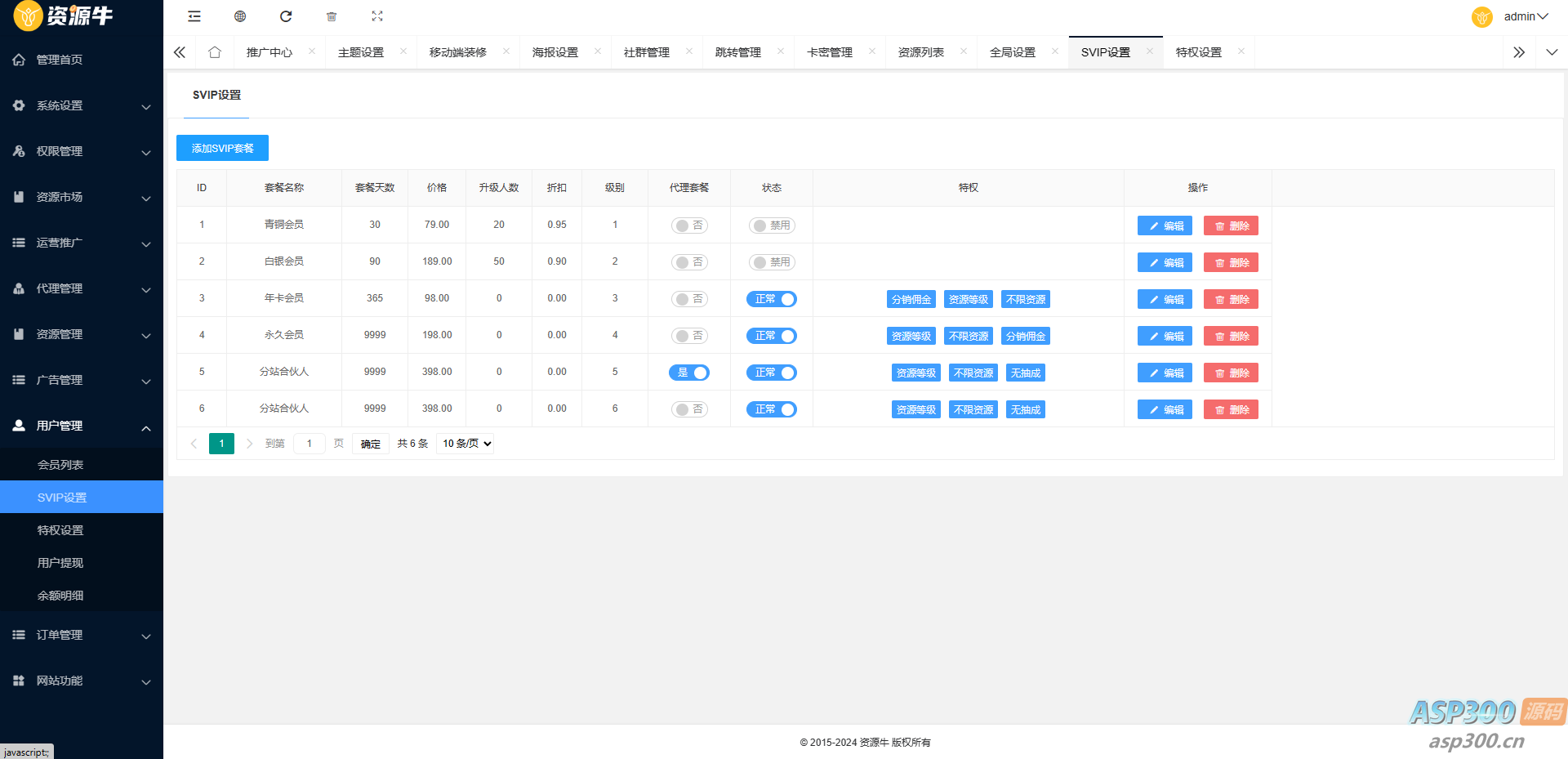 12、优化:系统后台代理分站推广资源优化资源发布价格