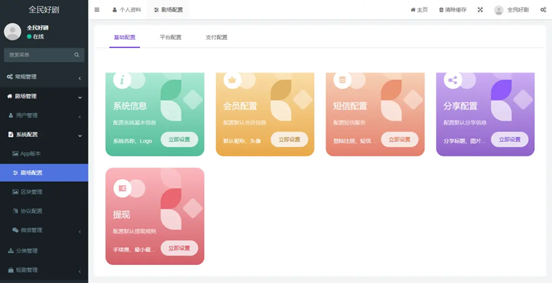 1、内容展现(短剧视频采用主流展现形式付费、免费、任务等方式解锁,后台可自由配置)
