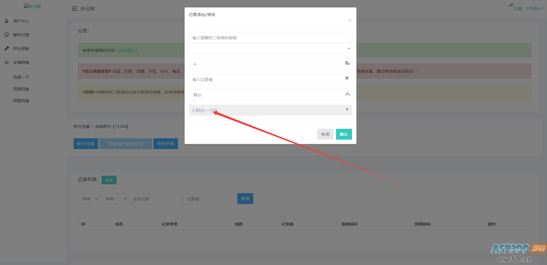 设置金币价格例如 备案域名baidu.com 解析一条10金币一个月,到期自动删除解析