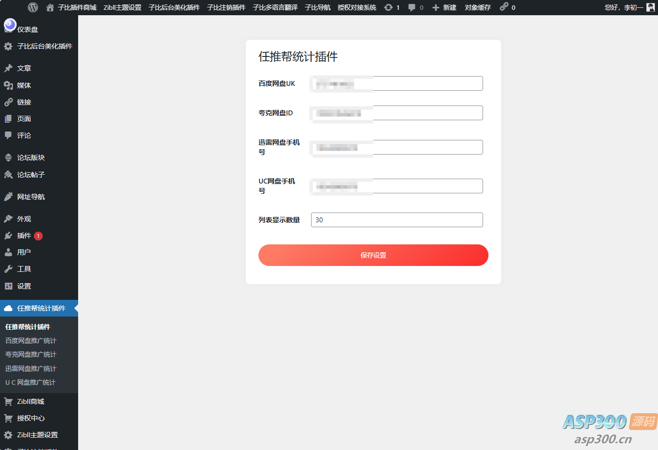 本次特意制作的全wordpress主题通用版本插件,后台填写查询的ID,填上面网盘就引入显示什么网盘的数据页面,不填则无