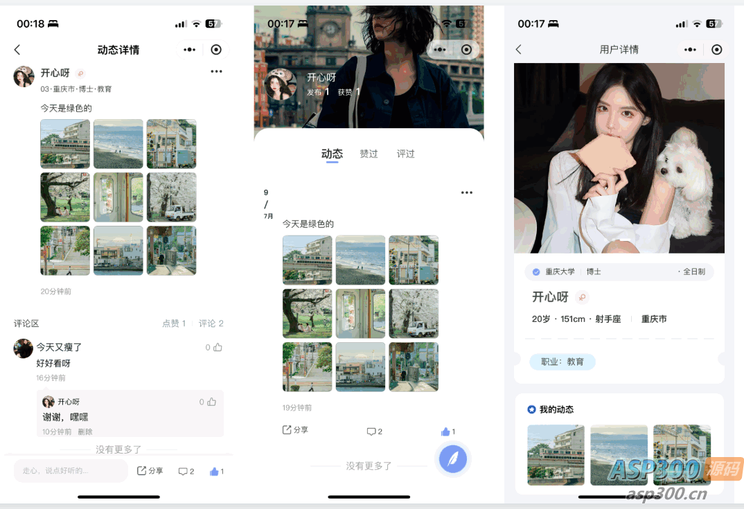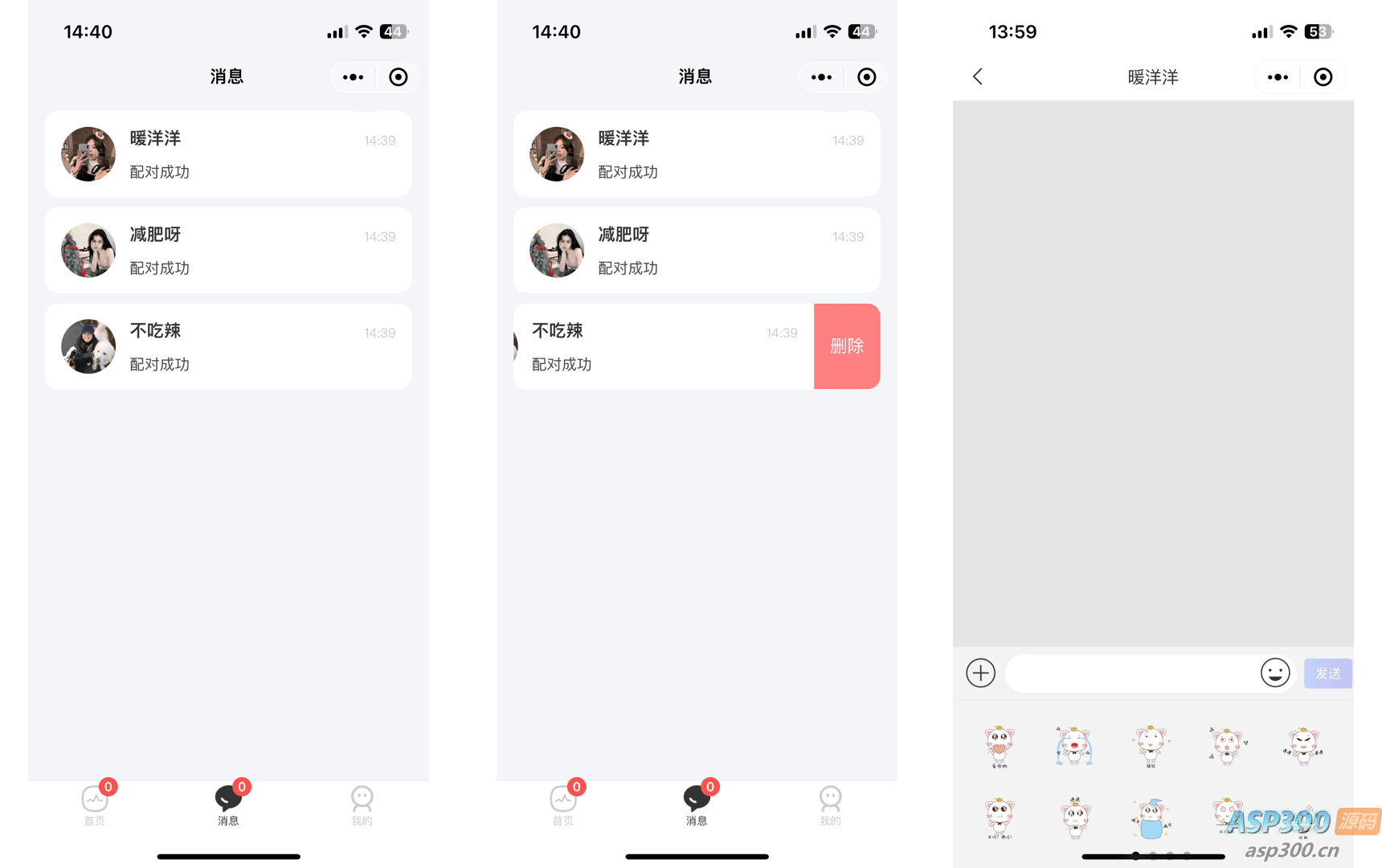 功能上基本还原青藤之恋,以双向喜欢后解锁聊天,目前适配微信小程序,手机App,H5,三端通用,
