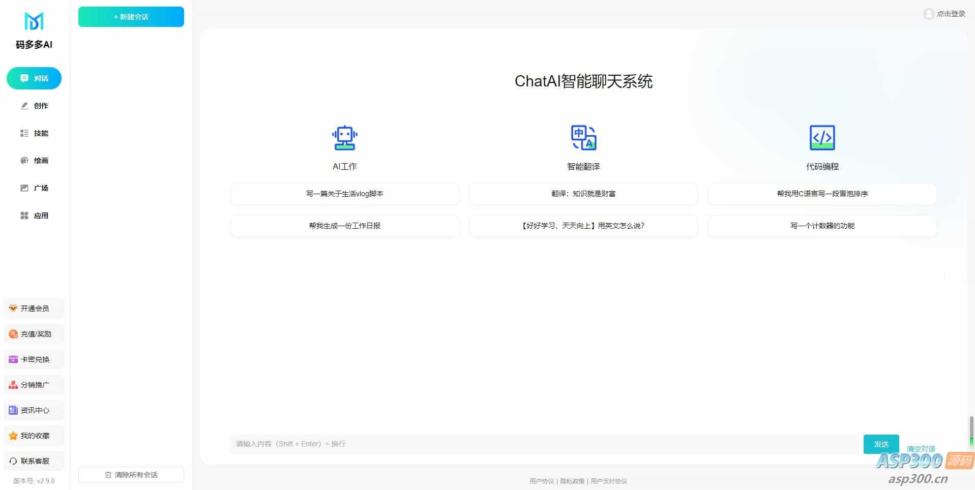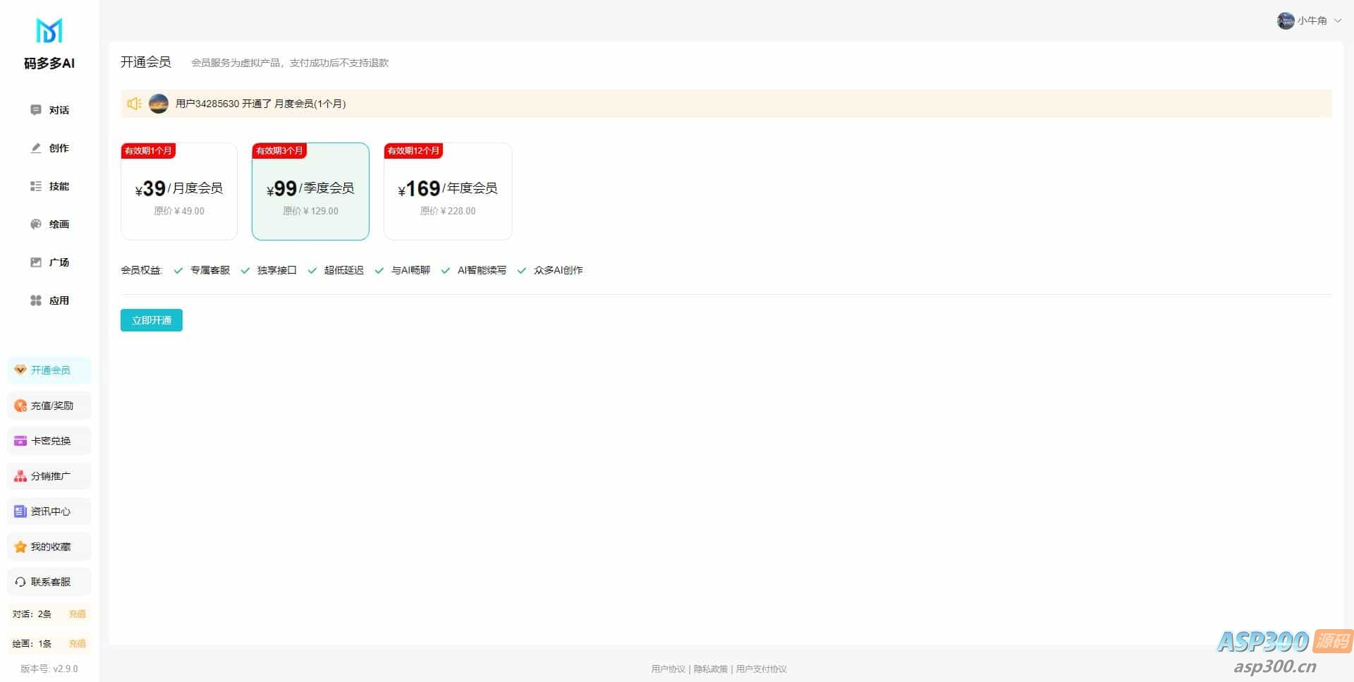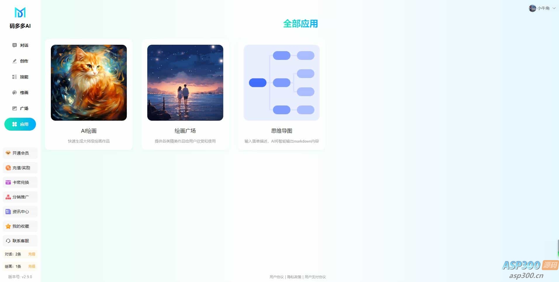 实现了AI对话+AI绘画的融合使用。系统功能包括:AI智能对话、AI创作模型、AI绘画、分销推广、会员套餐、