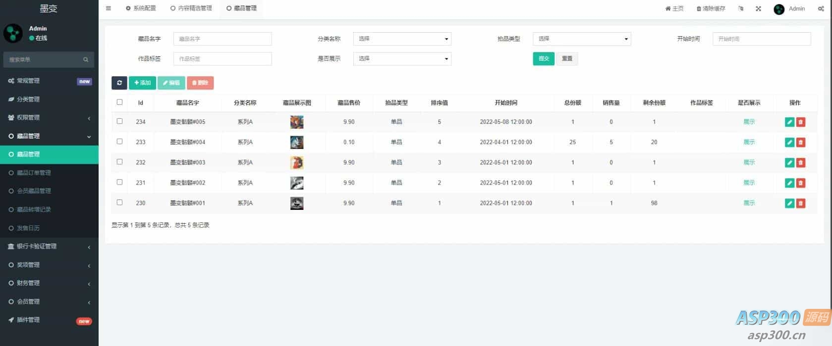 抢购模式:后台发布商品及链地址,前端可以抢购单品 盲盒模式:后台发布主要商品,可以添加多个同类的子商品,下单购买,随机获得 二手商城:购买完NFT作品,可以转售发布到二手商城 空投:邀请好友可以随机获得空投或者优惠券,空投商品,后台自己设置 声明:本站所有资源均来源于互联网收集,仅供学习参考使用,如若本站内容侵犯了原著者的合法权益,可联系我们进行处理。