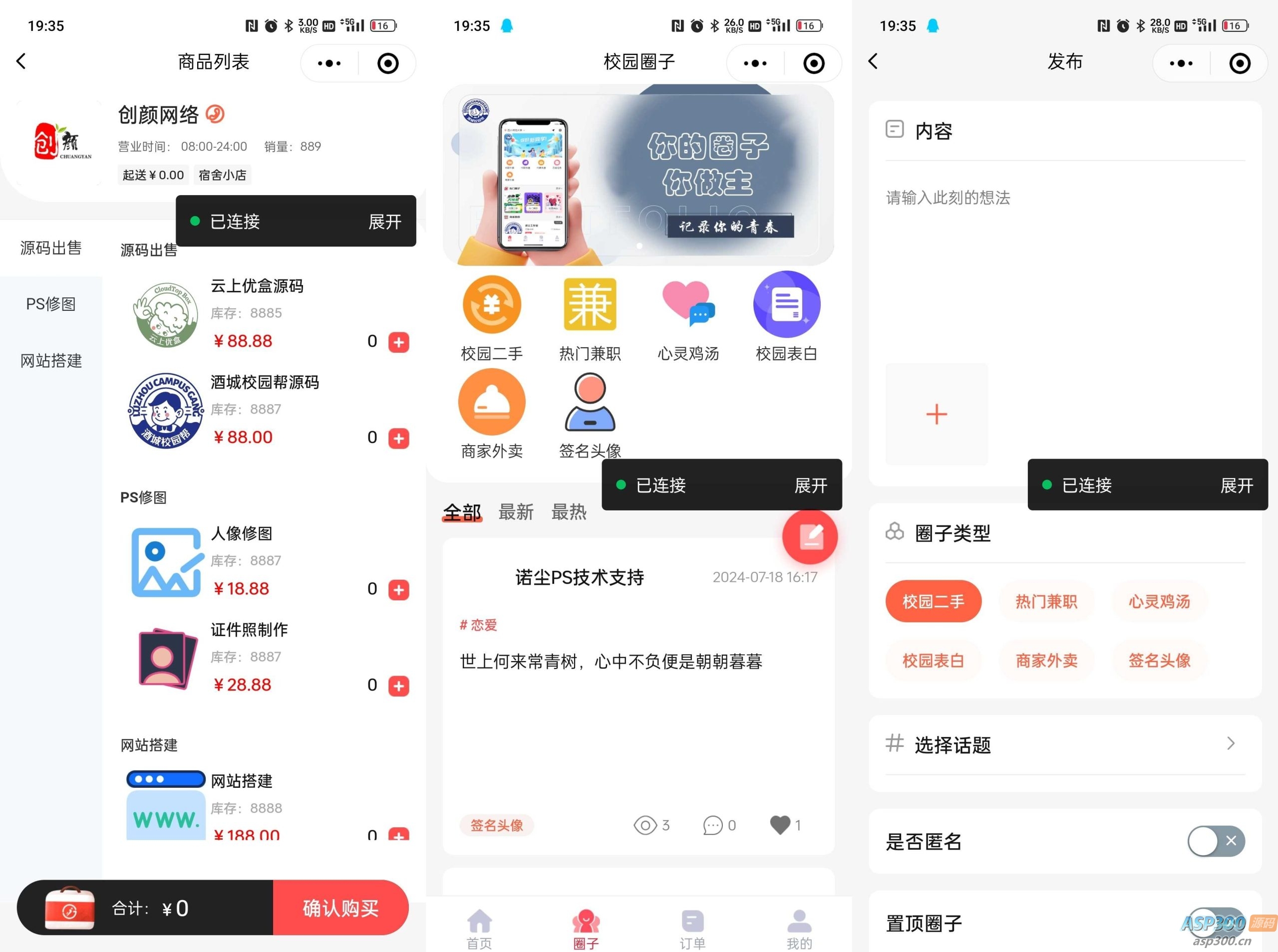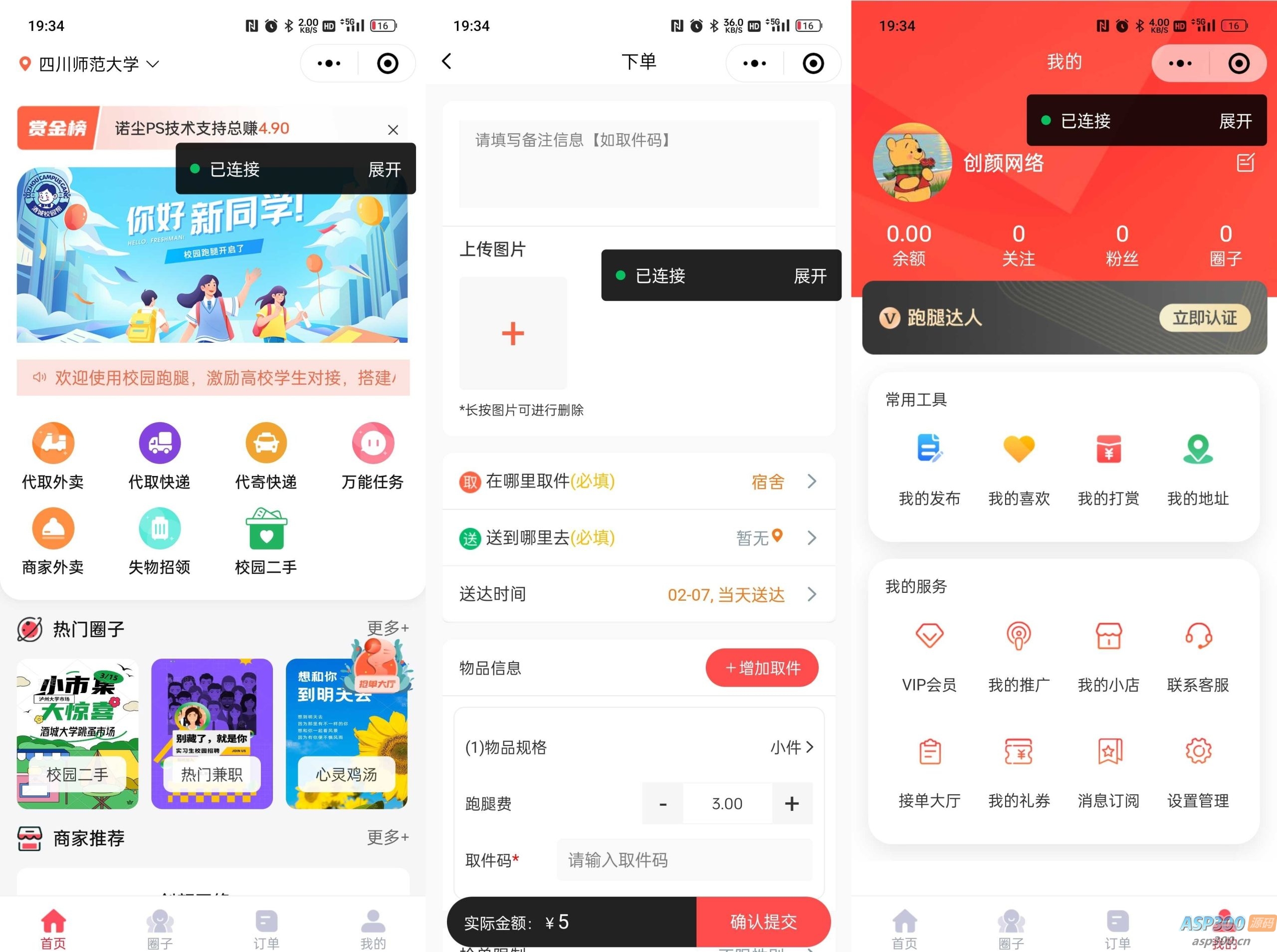 一套最新版本完美运行的校园跑腿、校园社区系统,适合跑腿,外卖,表白,二手,快递等校园服务