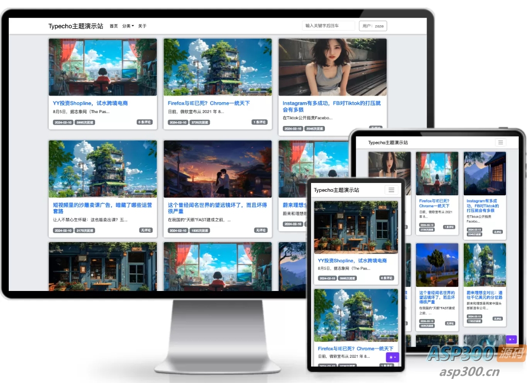 一款基于 bootstrap@5.3.3 开发的 typecho 单栏主题