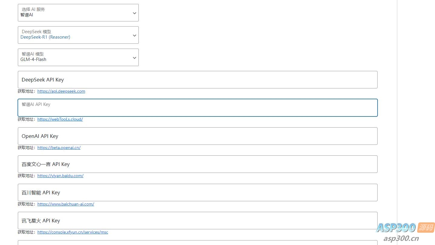 后台直接输入deepseek 的key即可使用(后台有获取key的官方链接)
