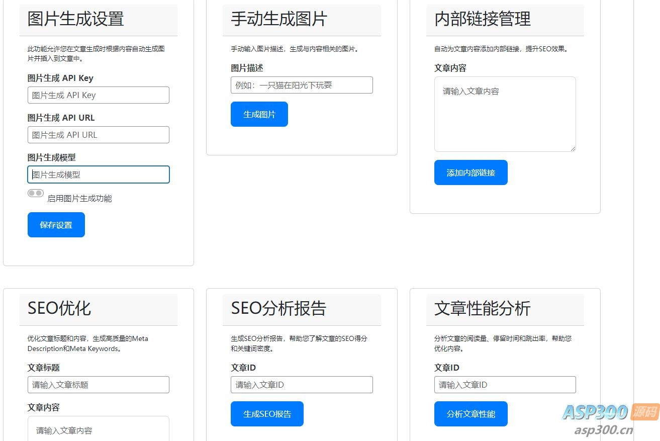 支持定时生成文章和采集内容,用户可以设置任务的运行频率和时间。提供任务队列管理,确保任务按顺序执行。