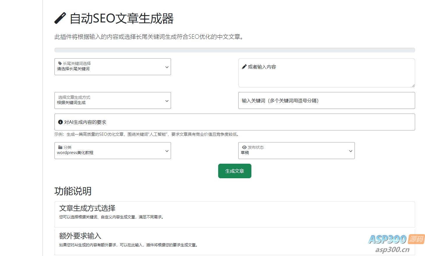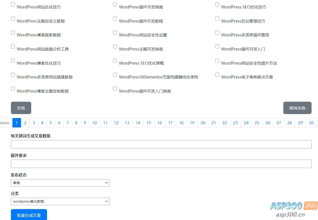 wordpressAI插件自动生成文章内容、图片、视频免费AI插件、AI前端交互、批量采集,支持deepseek