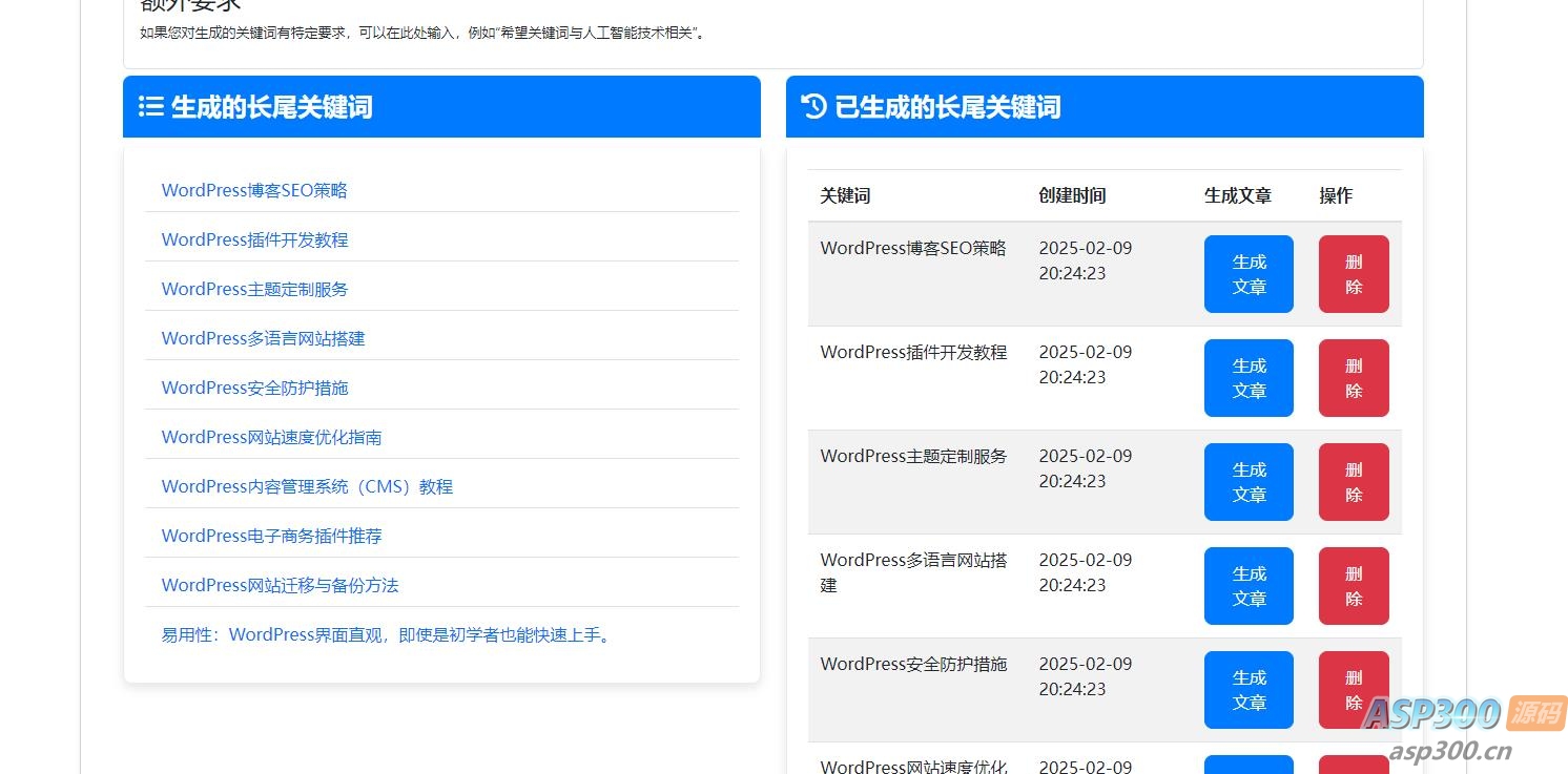 修复优化,文章生成和长尾关键词生成功能,后台自动优化,避免长久使用导致生成效率降低