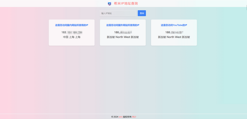 如题,简单单页,响应式布局,手机电脑访问均可自适应; 使用的 ip-api.com 的免费 API; 保存为 index.php 从你站点即可 声明:本站所有资源均来源于互联网收集,仅供学习参考使用,如若本站内容侵犯了原著者的合法权益,可联系我们进行处理。