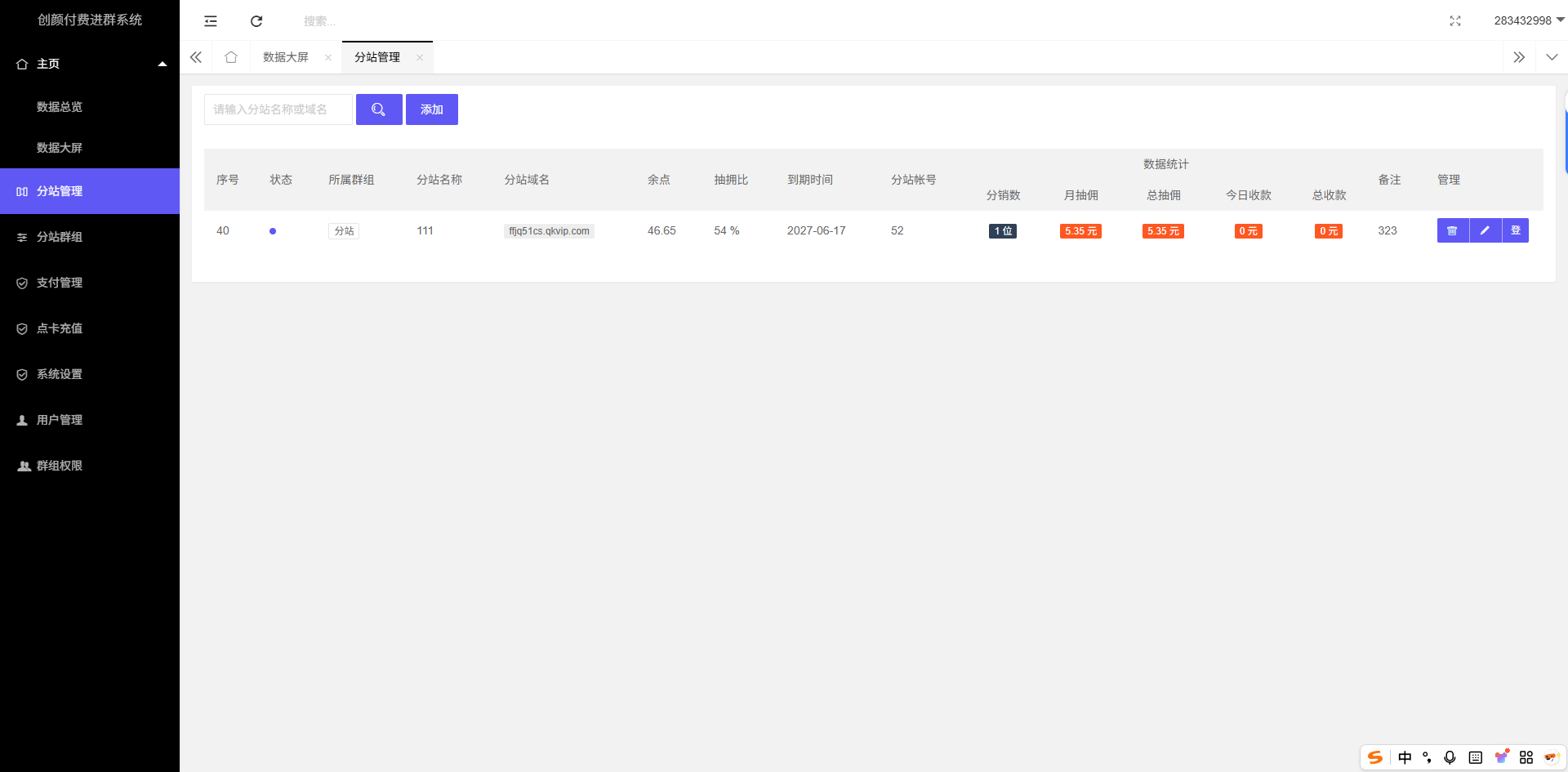 支持分站功能,可无限添加分站,分站可单独设置支付接口