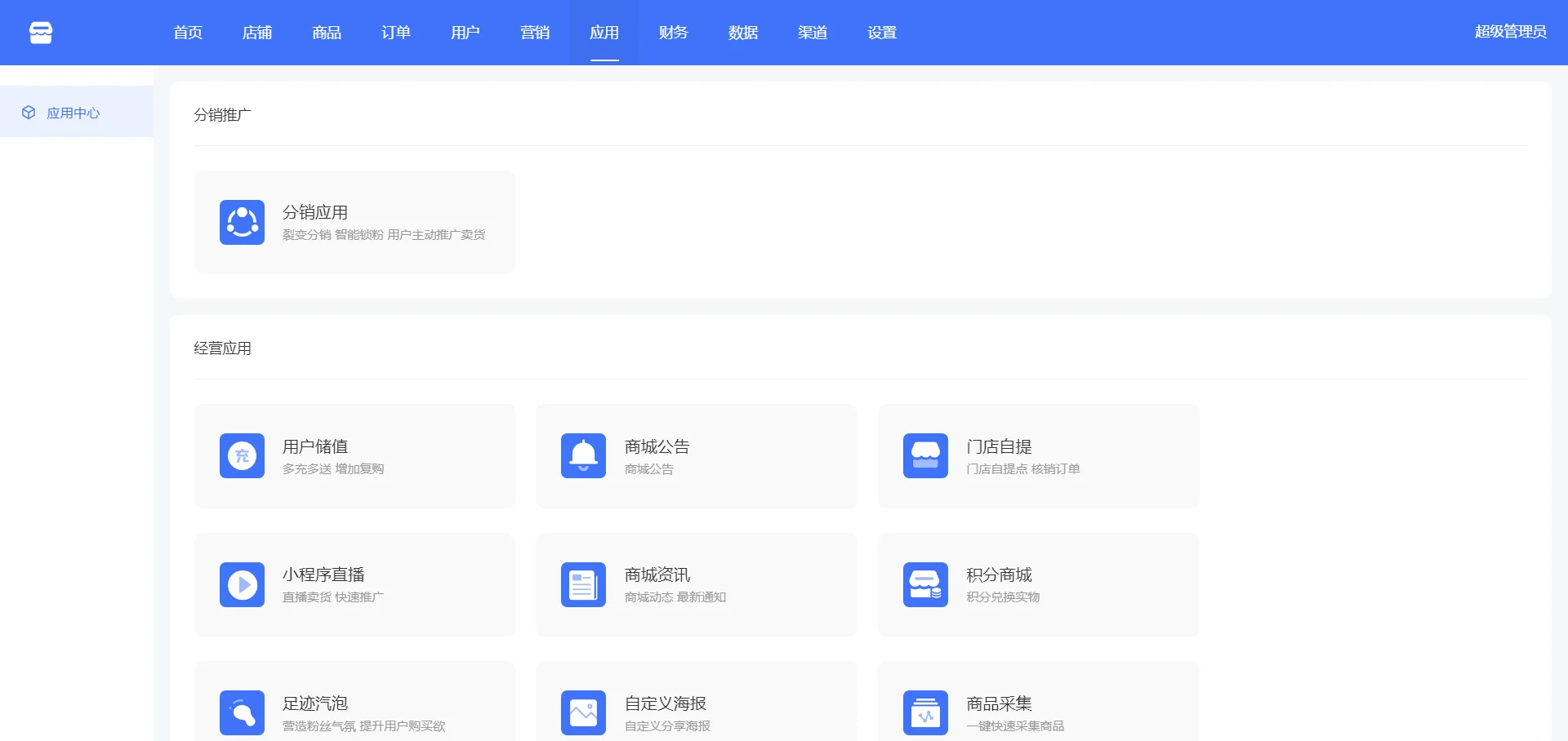 无限多开后台简洁明了,易操作,一键新增独立商城,一键更新所有独立商城,即可打造自有源码多开(SAAS)平台商城系统。每个商城独立后台,数据不混乱,管理有秩序。
