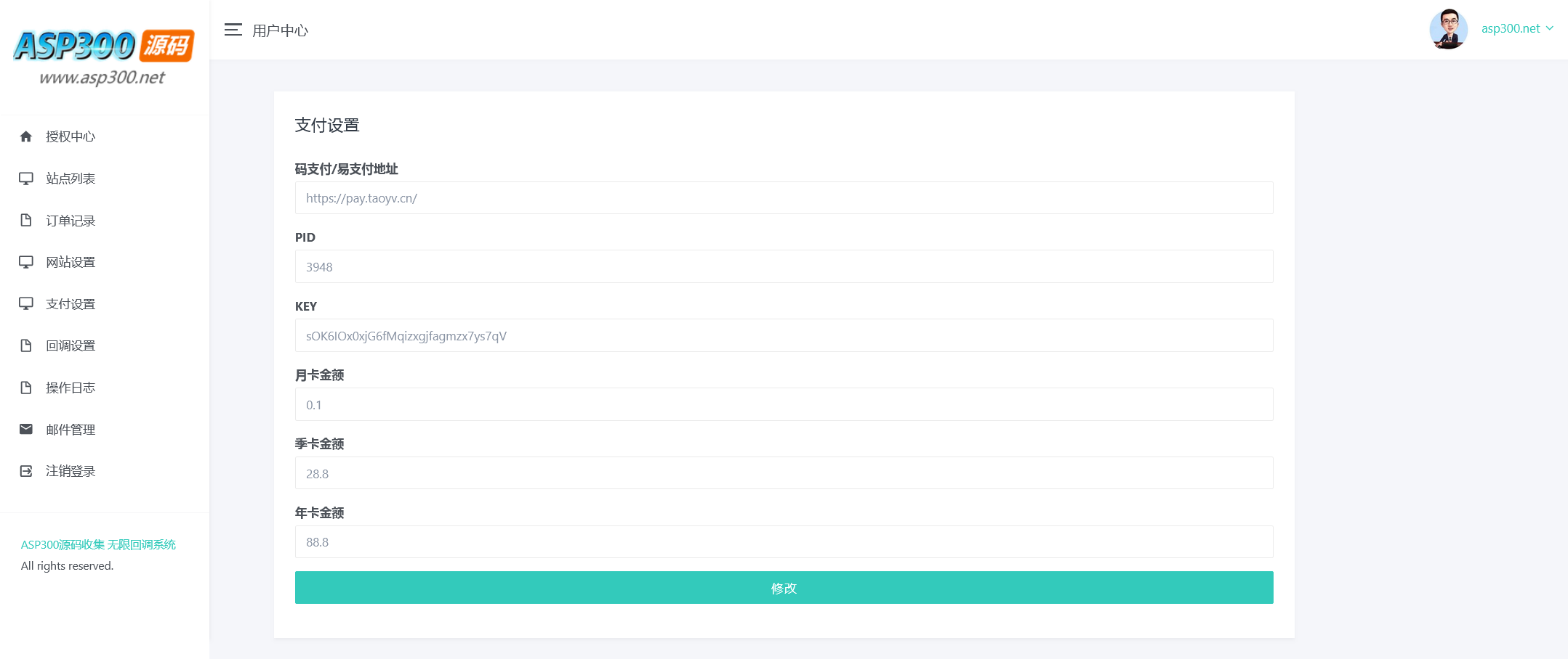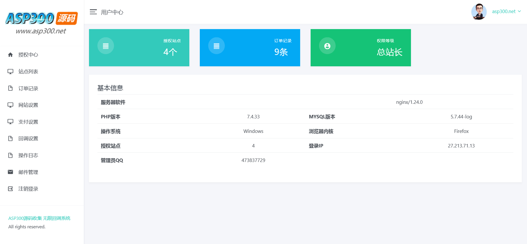 后台 域名/admin 账号 asp300.net 密码 asp300.net