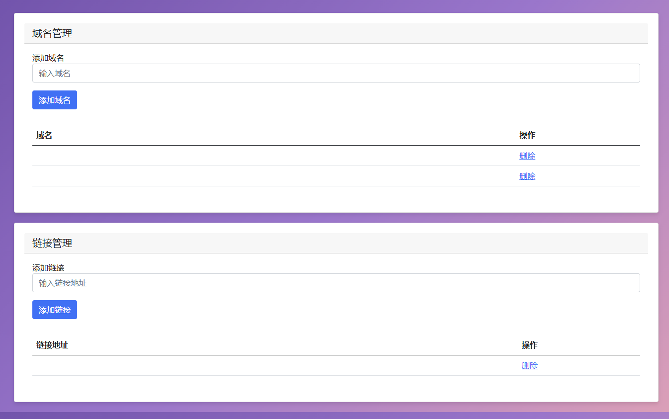 中转域名和需要跳转显示的域名在后台添加,如果是在微信推广,中转还有跳转显示的域名都不能红,红了就打不开