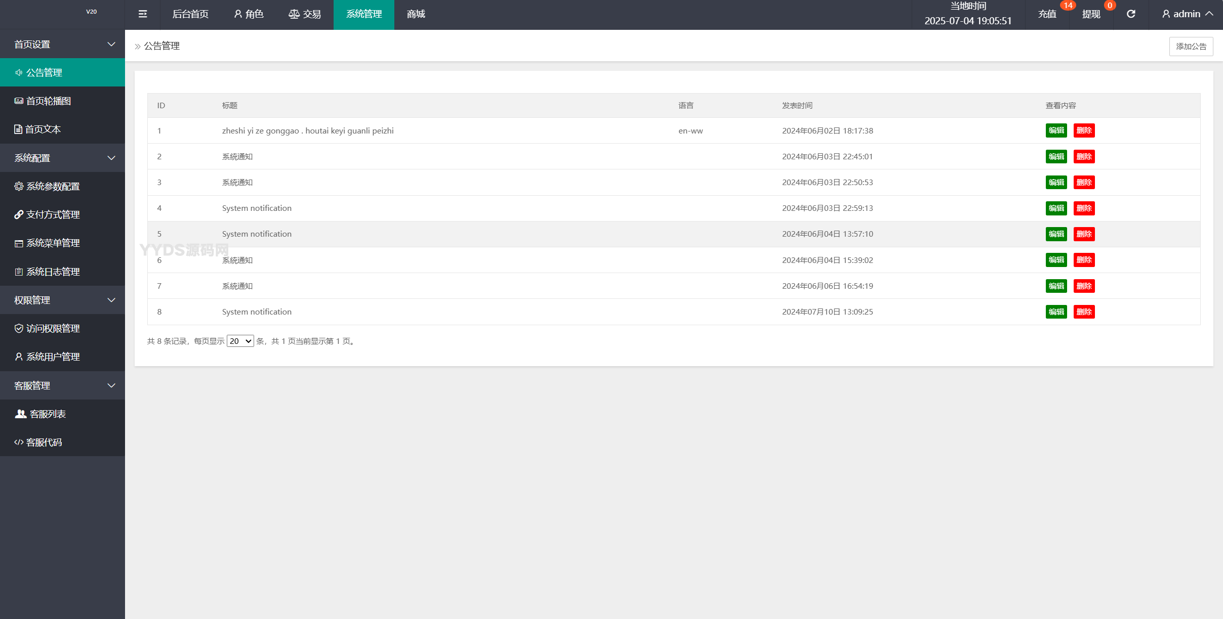 测试环境:Nginx、PHP7.2、MySQL5.6,运行目录设置为public,伪静态thinkphp,建议开启SSL 语言:11种