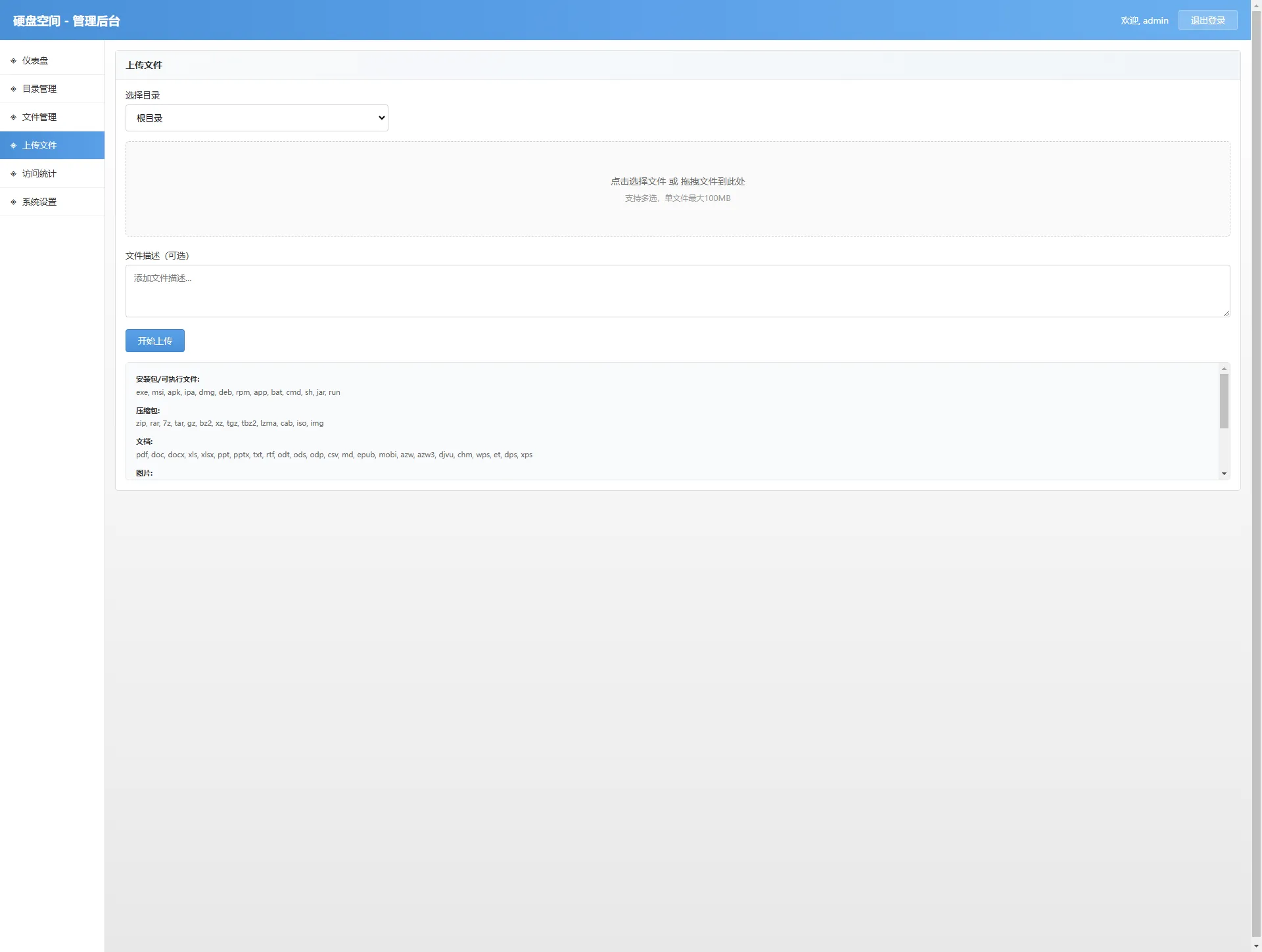 支持200+文件格式上传(exe、apk、zip、rar、pdf、mp4等)