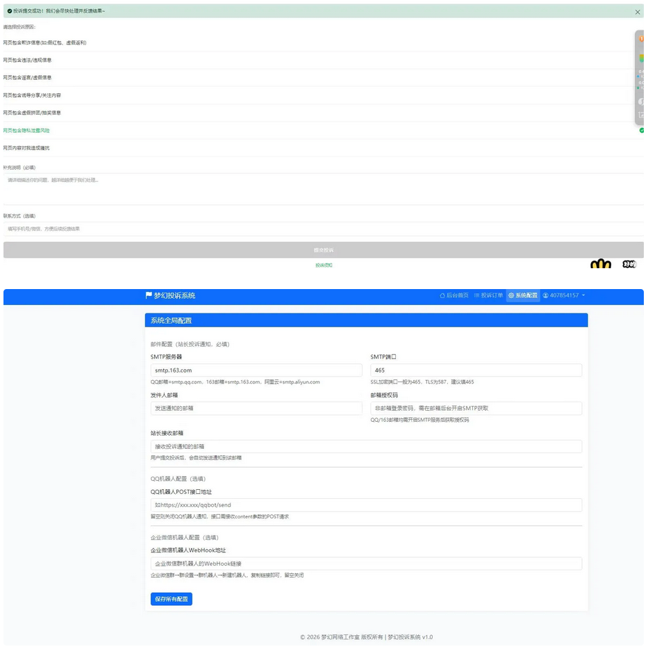 4.程序支持企业微信端口还有机器人端口通知的包括邮件的