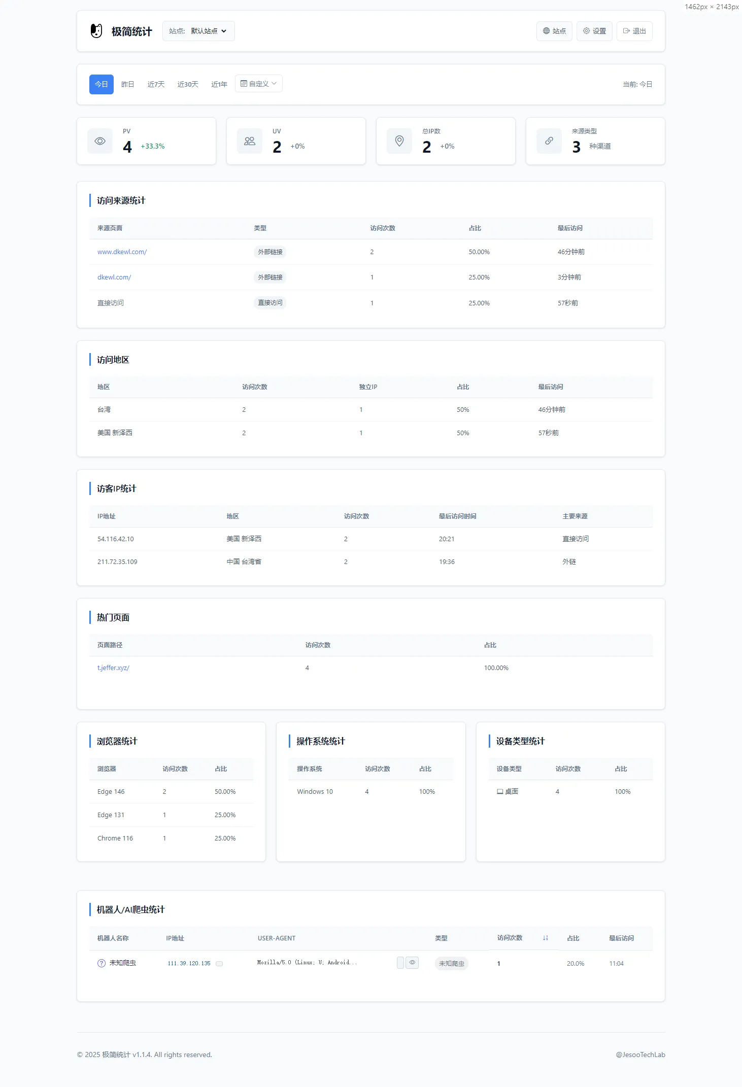 基础数据:PV、UV、IP、来源、地区、设备统计