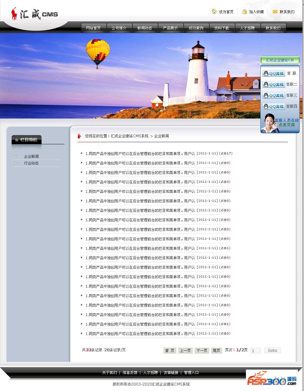 七、栏目、留言、新闻、产品等等模块,均可以无限级别分类,后台可以图文修改、添加、删除等等,前台调用数据也简单灵活,可在此基础上开发出不同的应用网站。