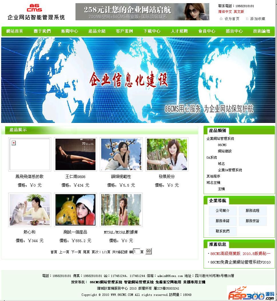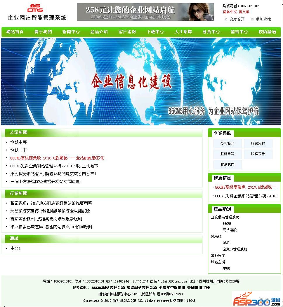 86CMS企业网站管理系统为智能ASP网站管理程序,适合中小企业自建网站、二次开发使用。本程序具有体积小巧、程序文件结构严谨、界面清爽简单、功能强大、非专业人士使用入门快、中小企业使用投资小等实用特点。