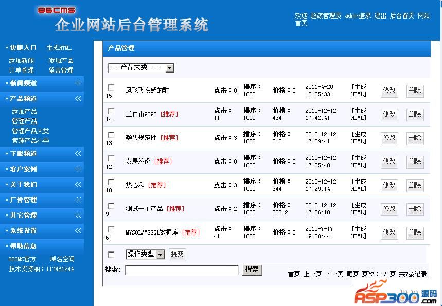 86CMS企业网站管理系统主要功能如下: