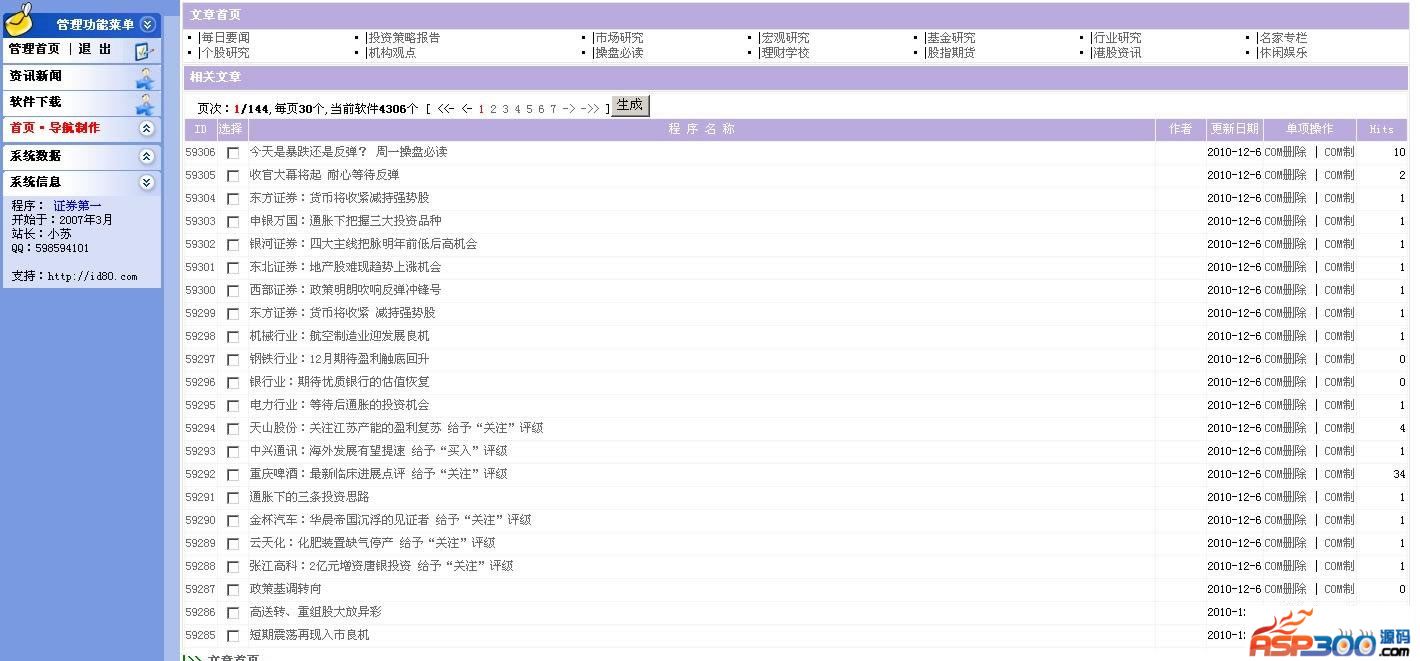 1、系统带有数千条最新证券类资讯,后台生成HTML页即可,发表文章分为后台录入,敏感字自动替换无需人工干与。