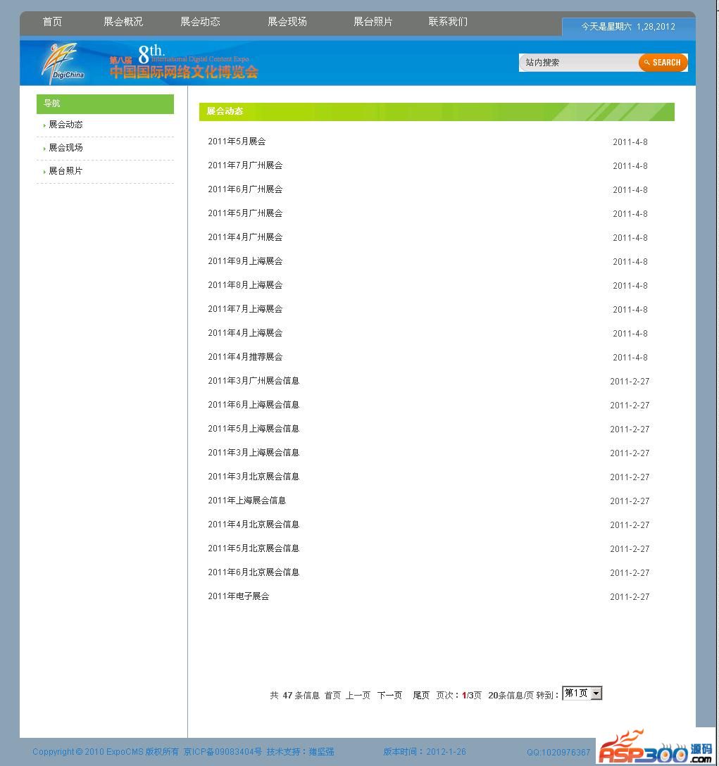ExpoCMS展会(展览会)网站系统 2.0 升级说明:2012-1-26