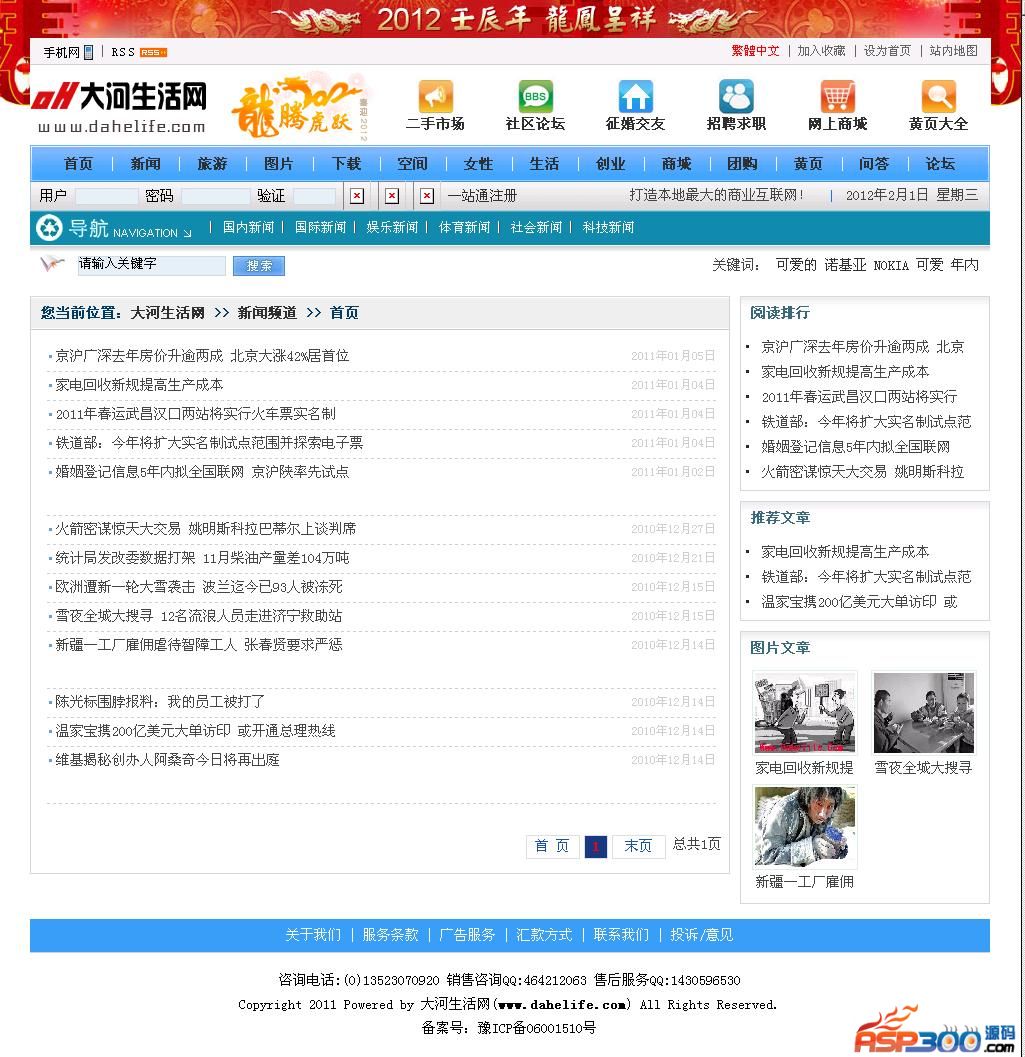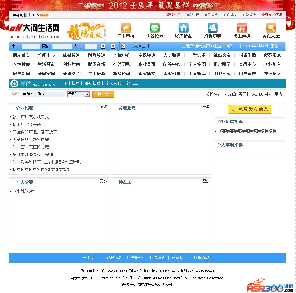 大河生活网7.1(带手机版):本程序为地方生活信息港门户站,也可以做行业信息网使用,基于ASP+ACCESS开发而成。