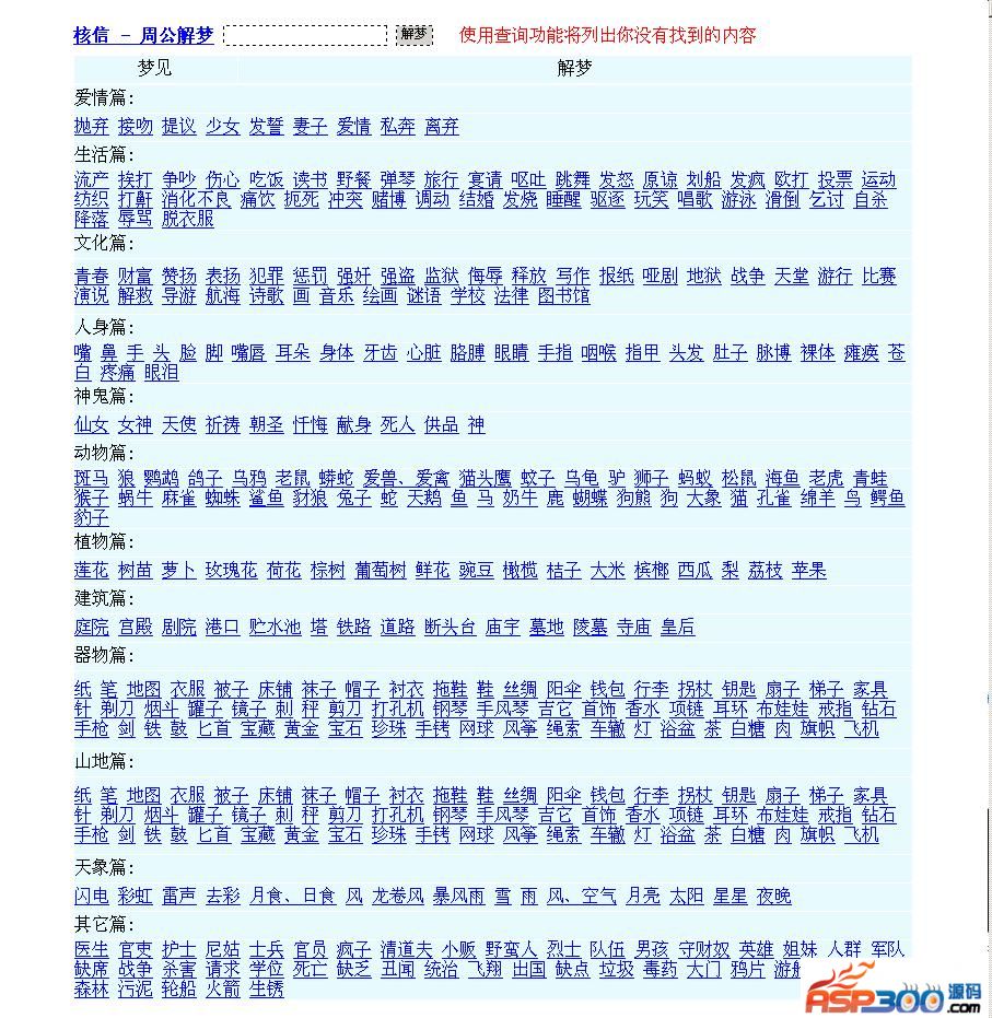 核信在线周公解梦源码是一款ASP的在线周公解梦源码,解压后直接上传,立即启用,占用空间很小,对于站长门极为有用,可作为站长工具或是站内娱乐的吸引点,来自核信免费资源网的免费自产绿色软件源码 下载地址 下载地址已转移到新版网站,请点击左上角-首页,在新版网站搜索此套源码的标题进行下载。
