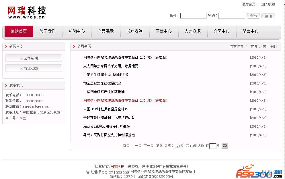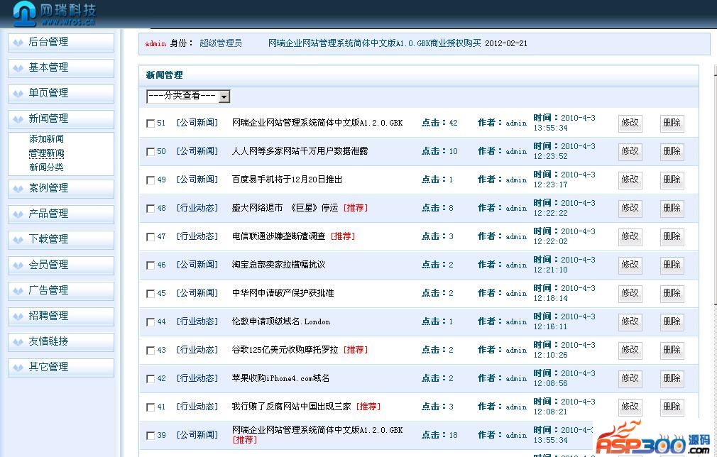 网瑞企业网站管理系统简体中文版A1.0.20120228.GBK 更新日志: