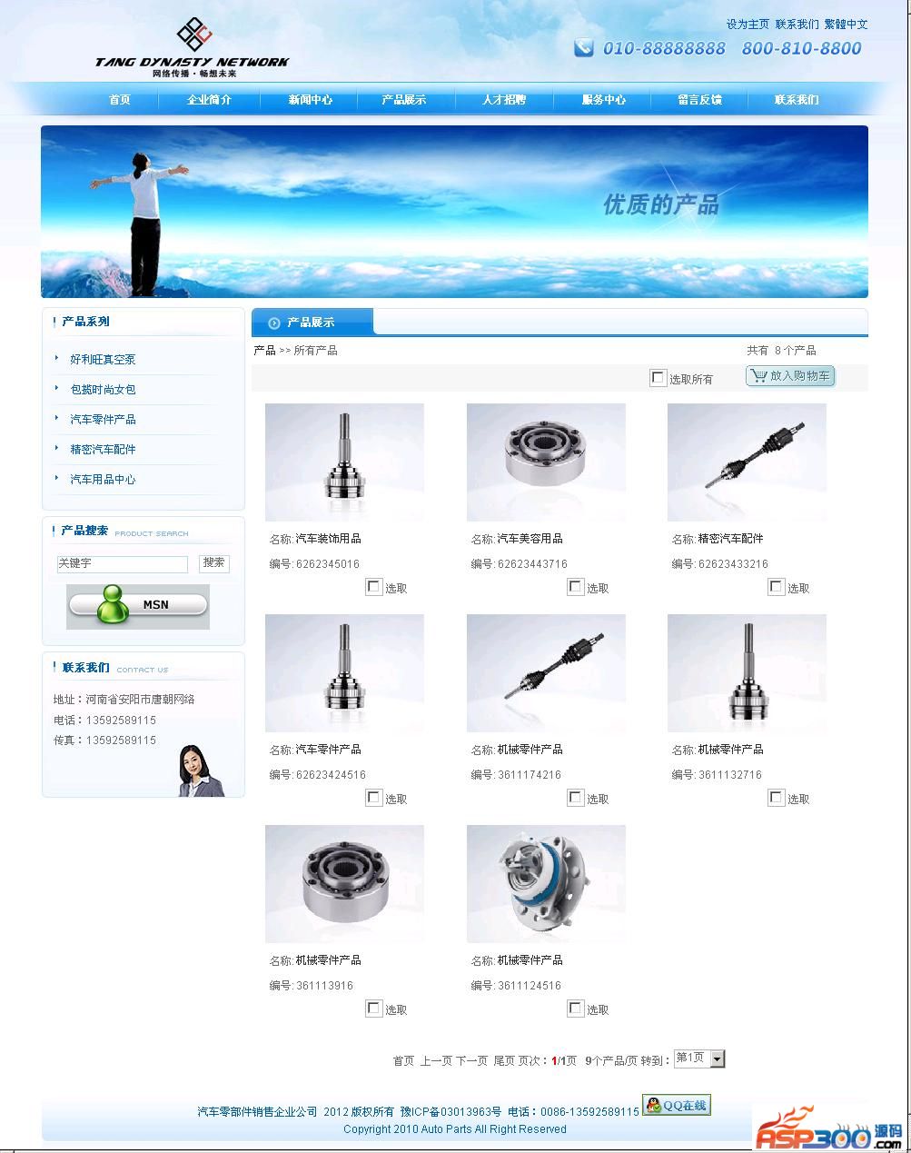 4、产品展示(支持3级目录,添加会员购物车功能,产品回复留言)