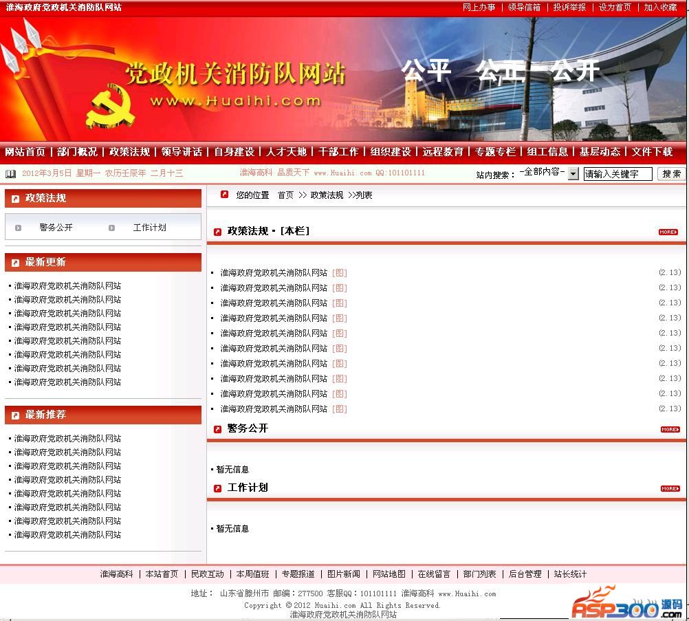 政府迫切需要一款功能适用,安全可靠的政务网站管理系统,政府网站正逐渐面向成熟化;实用化发展,在互联网高速发展的今天,网络能做到的事情越来越多,这种24小时不间断的宣传方式备受各领域青睐,但是传统的建站方案过于复杂,成本相对较高,现在有了自助建站系统,您只需要会打字即可马上拥有一套自己的政府网站。淮海政府党政机关消防队网站是基于ASP开发的一套政务教育门户网站管理系统,采用ACCESS数据库,使用简单快捷容易上手,仅需基础建站知识便可熟练操作。整站代码开源,无任何使用次数限制,无域名绑定限制。后台功能超强,风格大气,追求细节的完美性,优化了内核代码,升级了程序风格美工细节。经过历届版本的开发完善,现程序已几近完美。后台各项功能完整可用,无任何已知安全隐患。为政府网站提供优质、高效、便捷服务。程序后台会员管理合理完善,集成了政务类网站必备的各项功能,并且又创新增加了值班信息管理,后台控制值班人员名单。源码后台功能分权管理,指定后台会员分组权限,让后台管理分配更精确,各负其责。更多人性化的细节功能等待着您的发现。相信淮海政府党政机关消防队网站会给你带来高品质的使用体验!