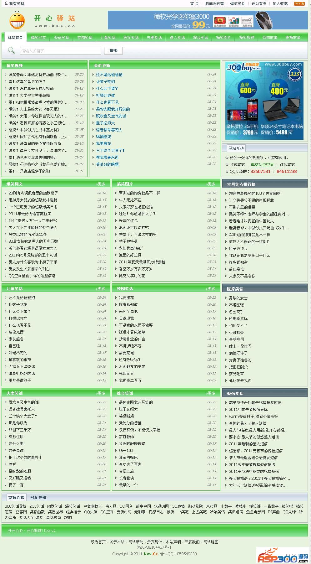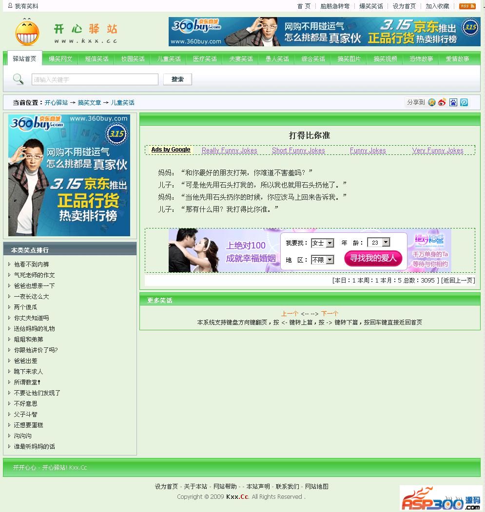 欢迎使用开心驿站笑话整站系统,开心驿站笑话整站系统采用新云4文章管理系统内核,适应中小新闻文章型网站及个人网站需求及asp初学者学习用,整个网站采用Div+Css布局,IE6、IE7、Firefox下测试无误。