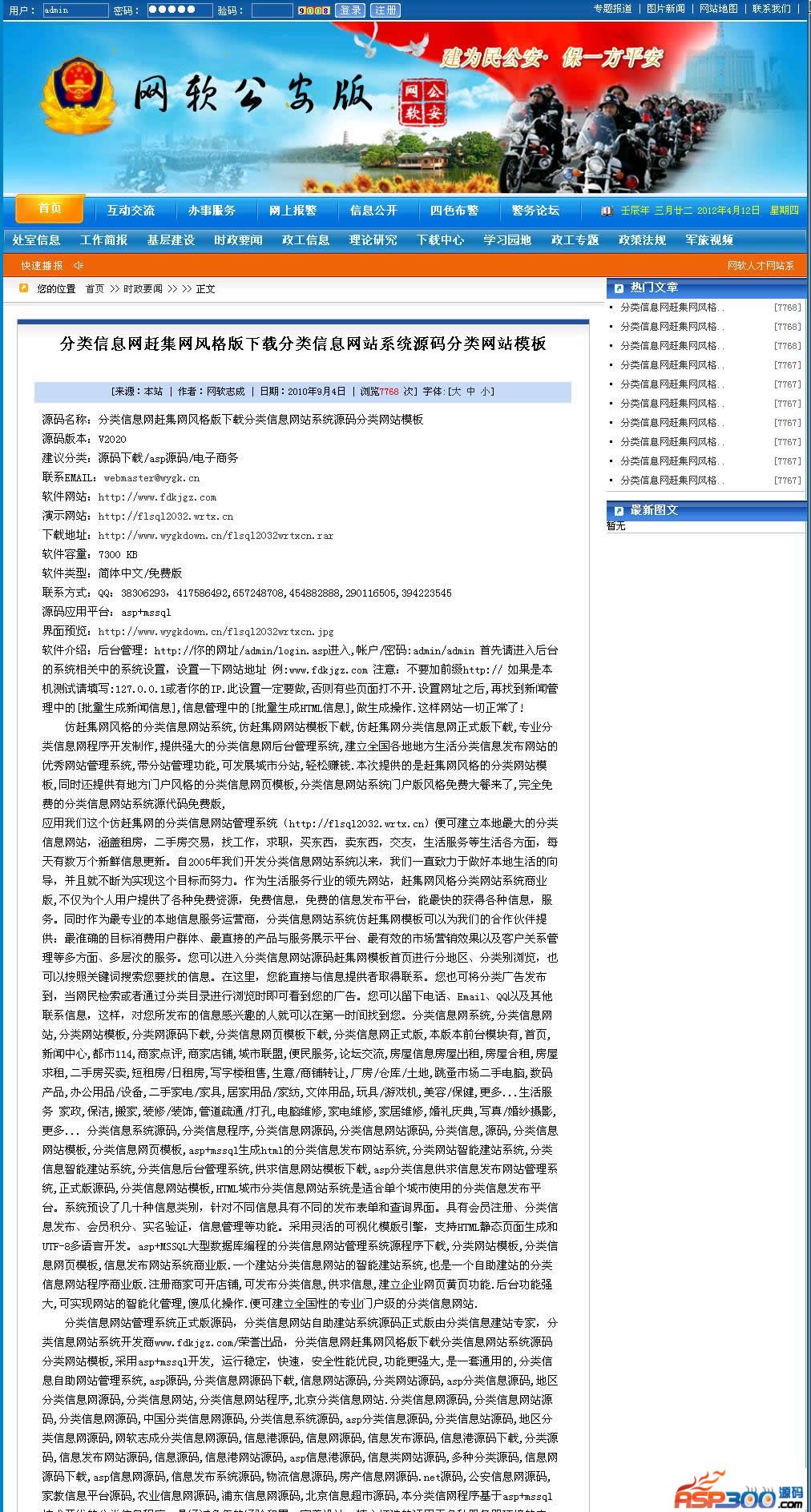 政府部门网站系统公安版,广州市公安局门户网广州金盾网智能建站系统正式版下载,北京市公安局公安交通管理局网站模板,深圳市公安局交警局信息网源代码下载,重庆市公安局公众信息网全站管理系统源程序,广州市公安局官方网站模板,台州市公安局网站后台代码,台州公安网后台管理系统源程序,台州警察网模板下载,公安机关门户网站系统源程序,全国唯一为铁路公安局定做的公安网站程序,森林公安分局网站模板,民航公安局合适的网站管理系统,公安局门户网站系统正式版,ASP公安局网站管理系统自身具有强大、完备的网站后台管理功能,功能全面,操作简易。系统前台的栏目、菜单、功能入口等全部实现后台控制,用户只需在后台进行简单的设置即可制作出适合于自身公安方面的单位网站系统。