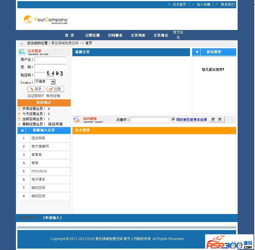 本站申请系统使用九酷个人主页空间管理系统为原型修改,用户网站为:actcms4.0(门户)、bbsxp8.5(社区)maxcms4(视频)版本修改