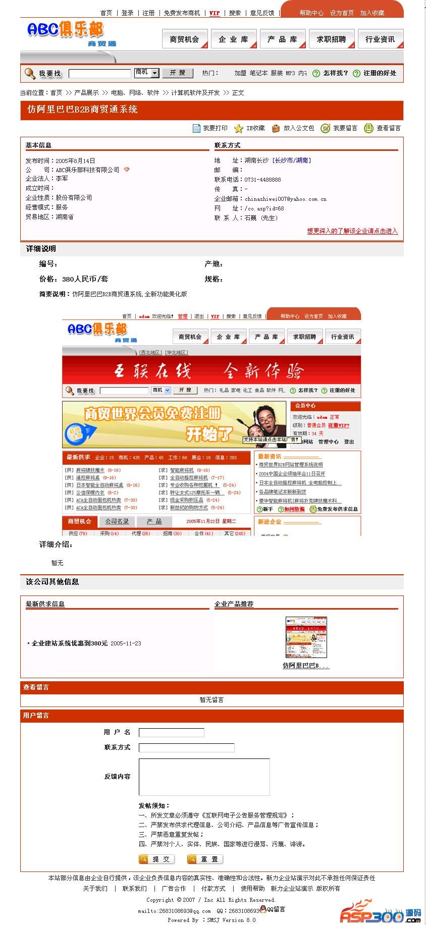 1.本程序是个B2B网站平台!页面整洁明了.信息清晰可见!
