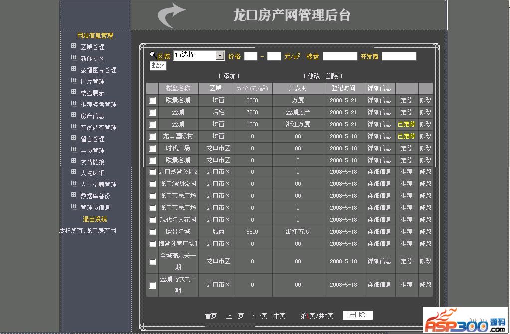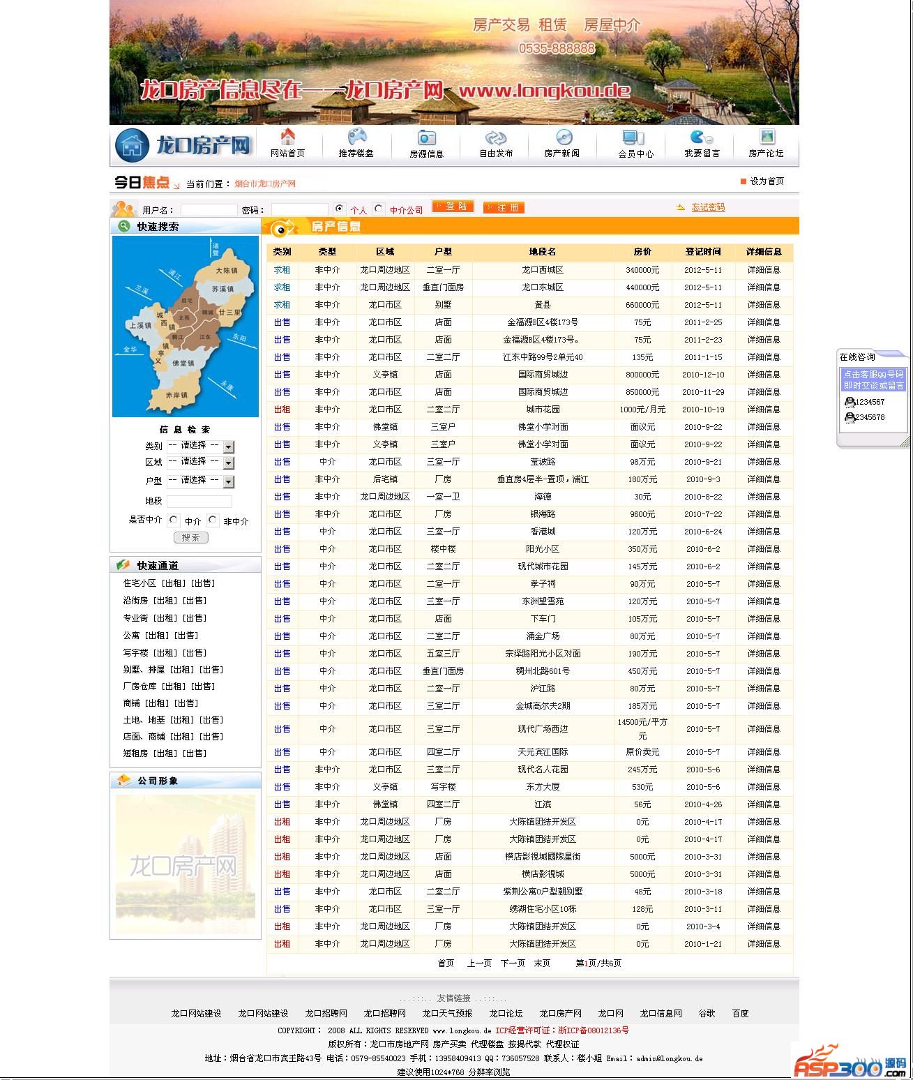 龙口房产网整站是网站未改版之前使用的一套系统,因更换新系统特此放出,此系统大气简洁,是很不错的房地产网站源码,数据库未删除数据,包含龙口房产网所有房产数据,安装之后和演示一模一样,可直接使用,本系统无任何功能限制。