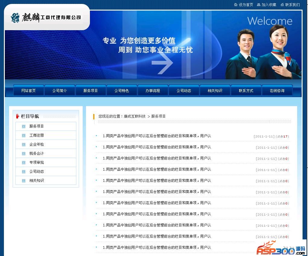 此系统 我们认真调查了工商注册类网站,整合了公司注册类网站的常规的栏目、