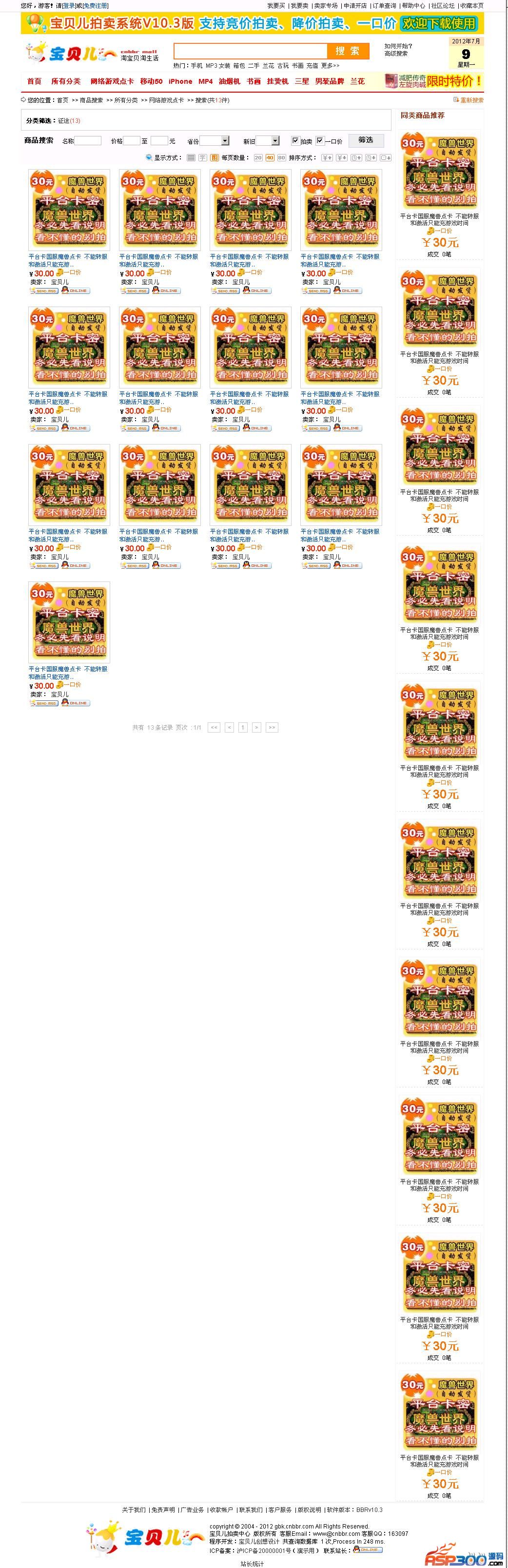 宝贝儿拍卖系统BBRv10.4版主要功能列表