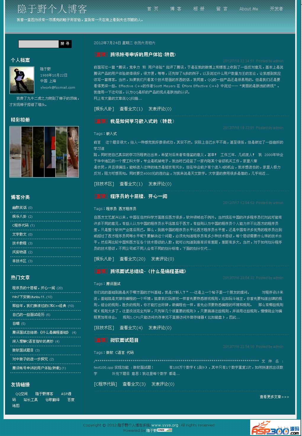 下载地址:http://www.yyye.org/download/隐于野个人博客源码.rar