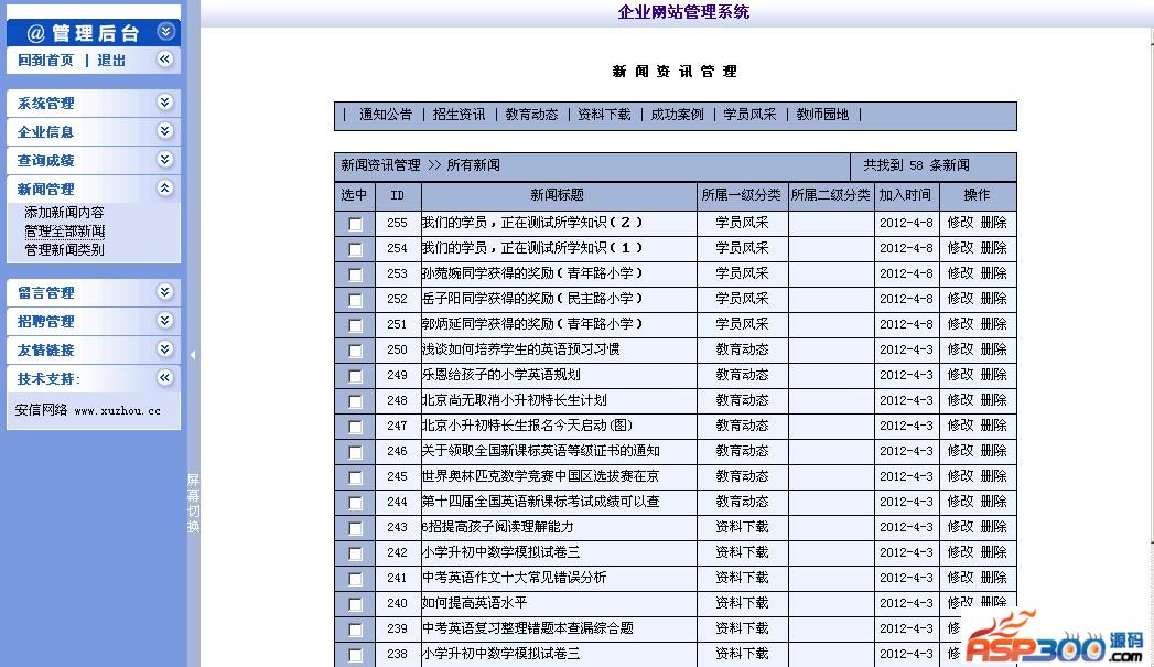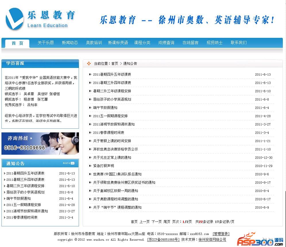 奥数英语培训学校网站系统v1.2是专为奥数英语培训学校网站管理系统,绿色风格、清新时尚,适合小学阶段教育培训机构使用,网站采用ASP语言+ACCESS数据库开发,主要功能有机构简介、新闻动态、课程介绍、成绩查询、在线留言、在线报名、招聘信息等。