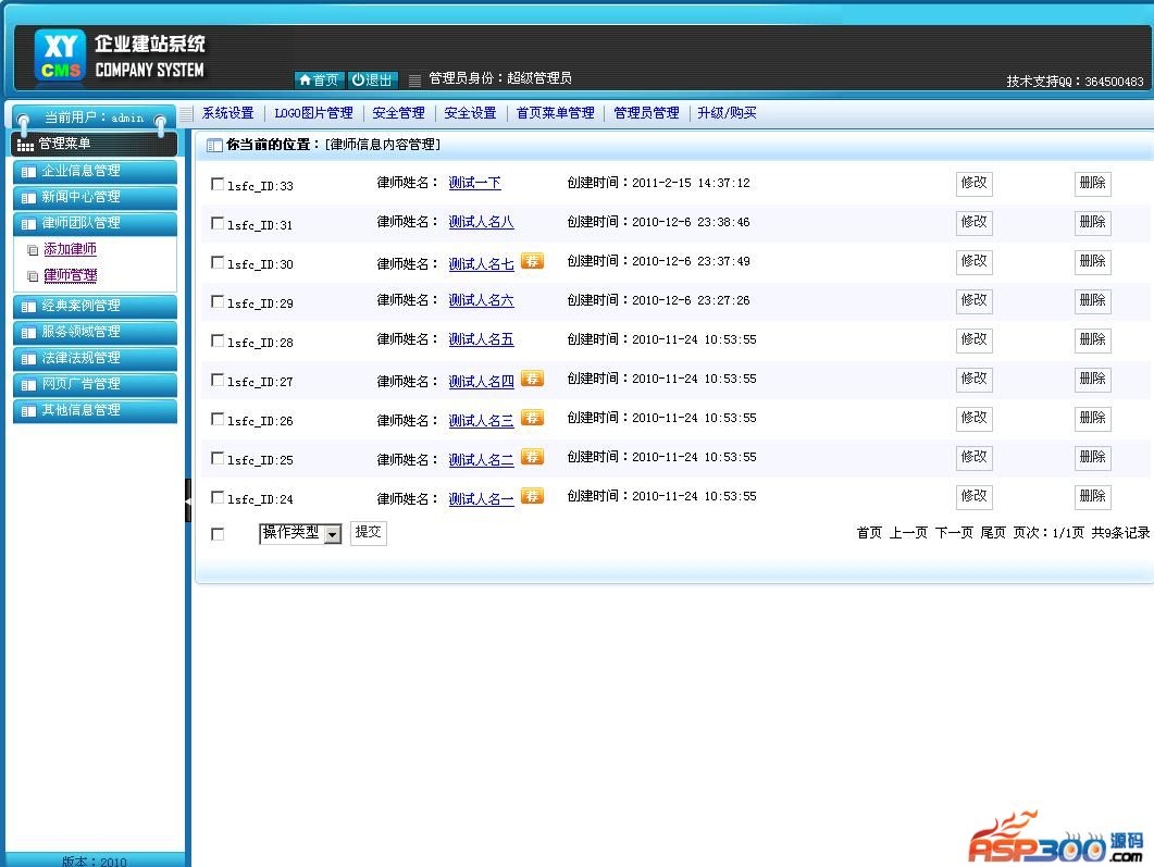 律师风采管理:对律师事务所成员进行管理,可添加,删除等操作